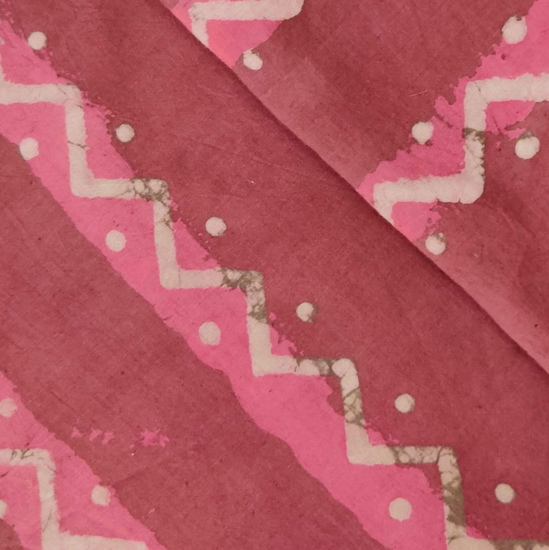 Pure Cotton Dabu With Cream Tribal Zig Zag Hand Block Print Fabric