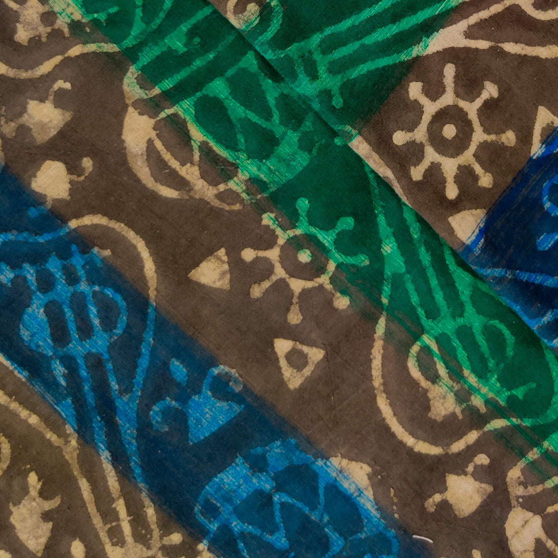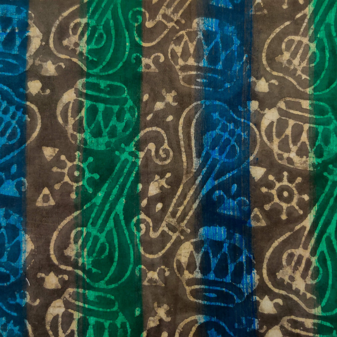 Pure Cotton Dabu With Musical Instrument And Blue And Green Brush Strokes Hand Block Print Fabric blouse piece 80cm