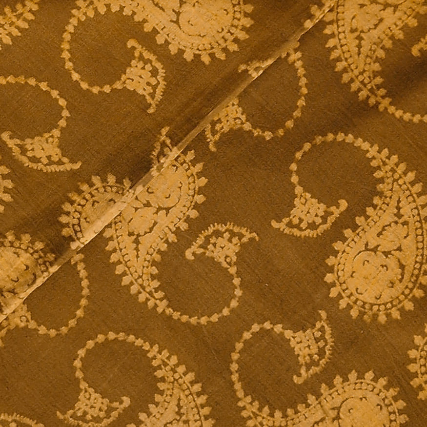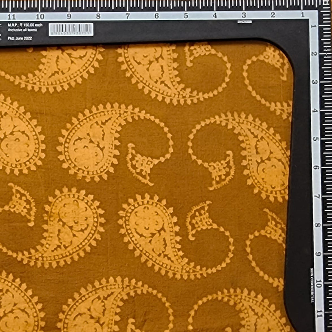 Pure Cotton Dabu Brownish Yellow With Kairi Jaal Hand Block Print Fabric