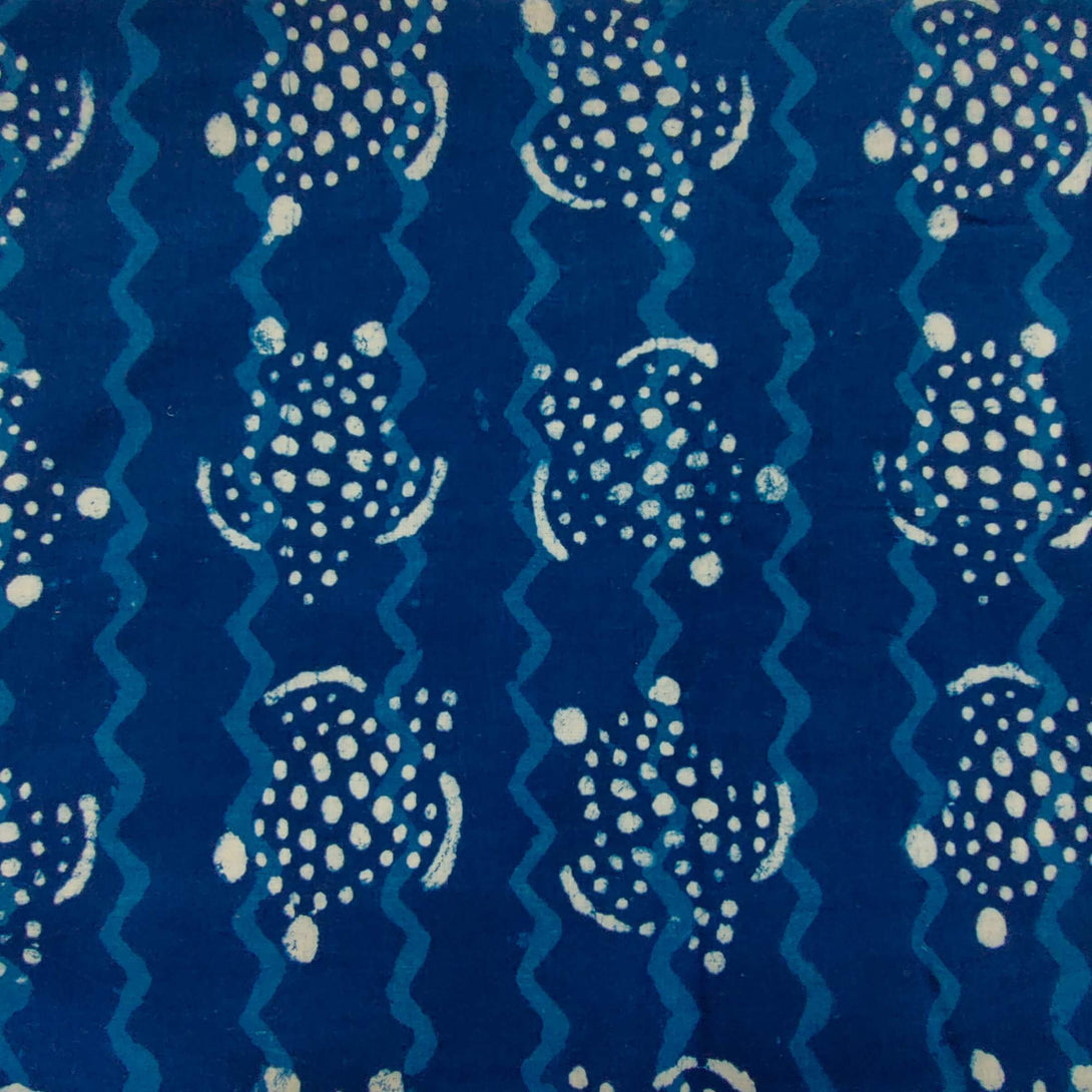 Pure Cotton Dark Indigo With Turtle In The Sea Hand Block Print blouse piece Fabric (1 meter)