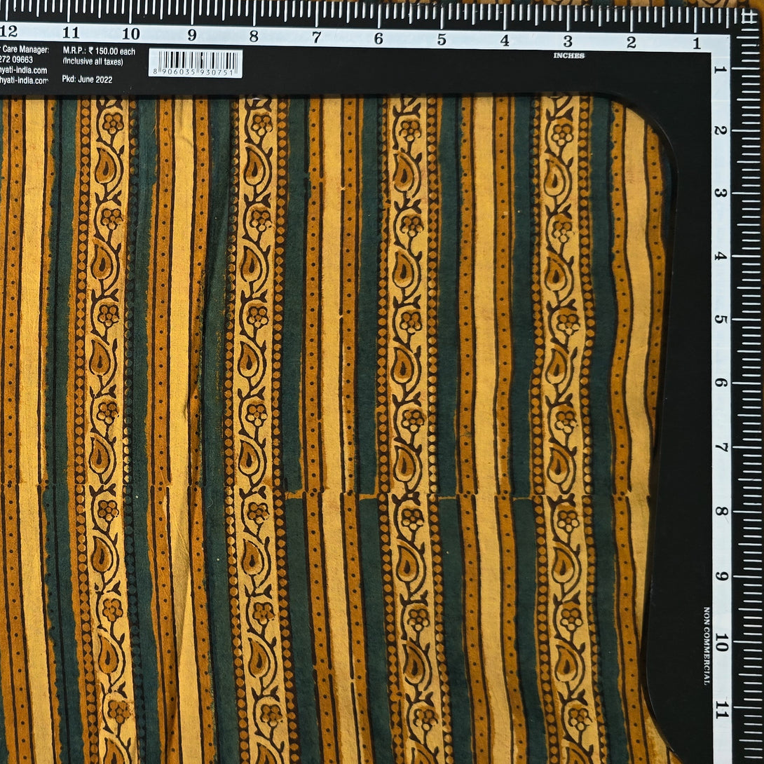 Pure Cotton Double Ajrak Yellow With Green Border Intricate Design Hand Block Print Fabric