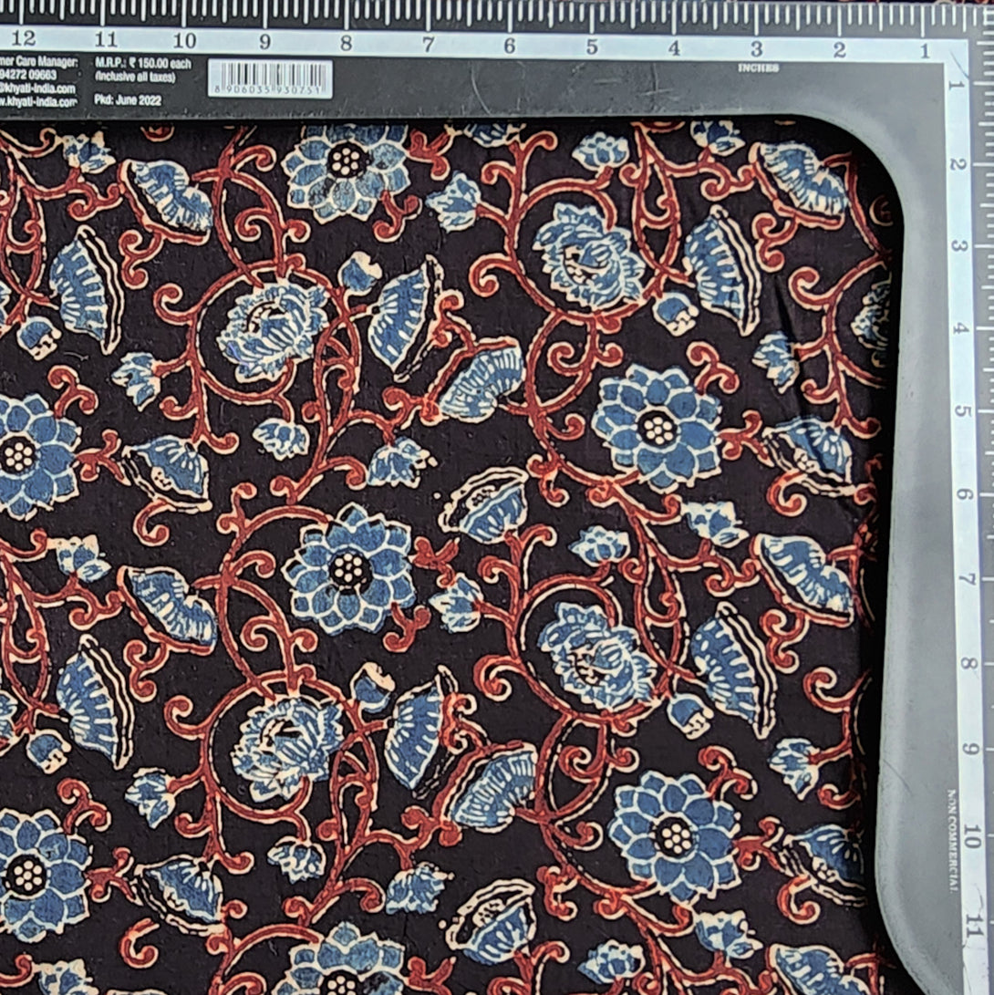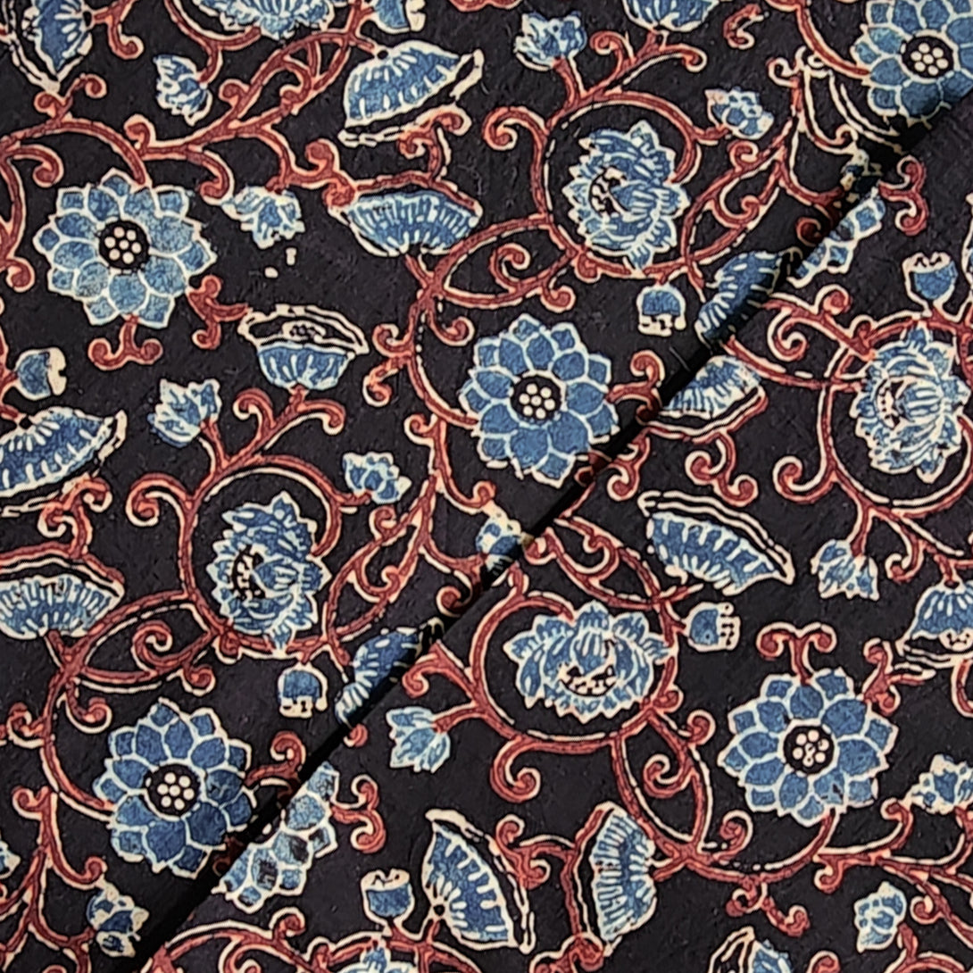 Pure Cotton Gad Ajrak Black With Blue Hand Block Print Fabric