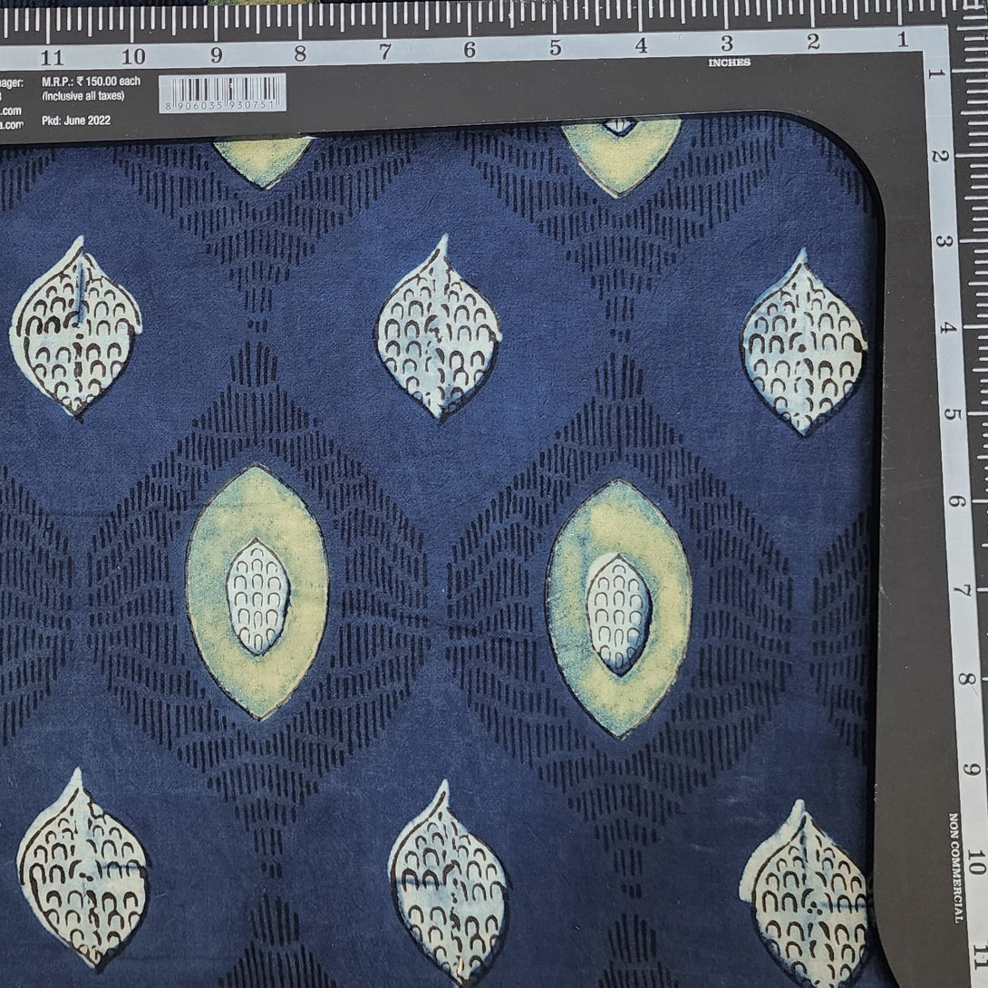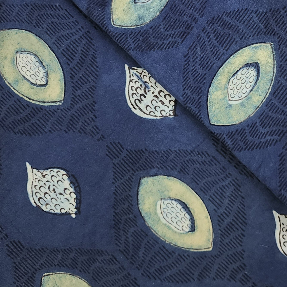 Pure Cotton Gad Ajrak Blue With Mint Green Avocado Design Hand Block Print Fabric