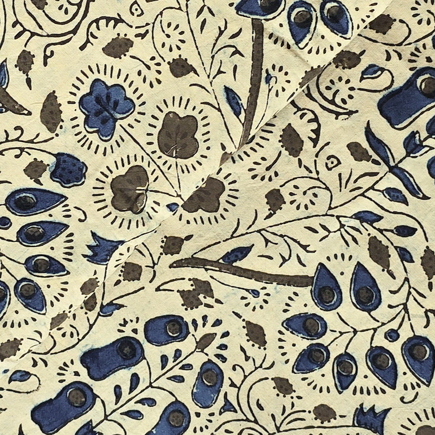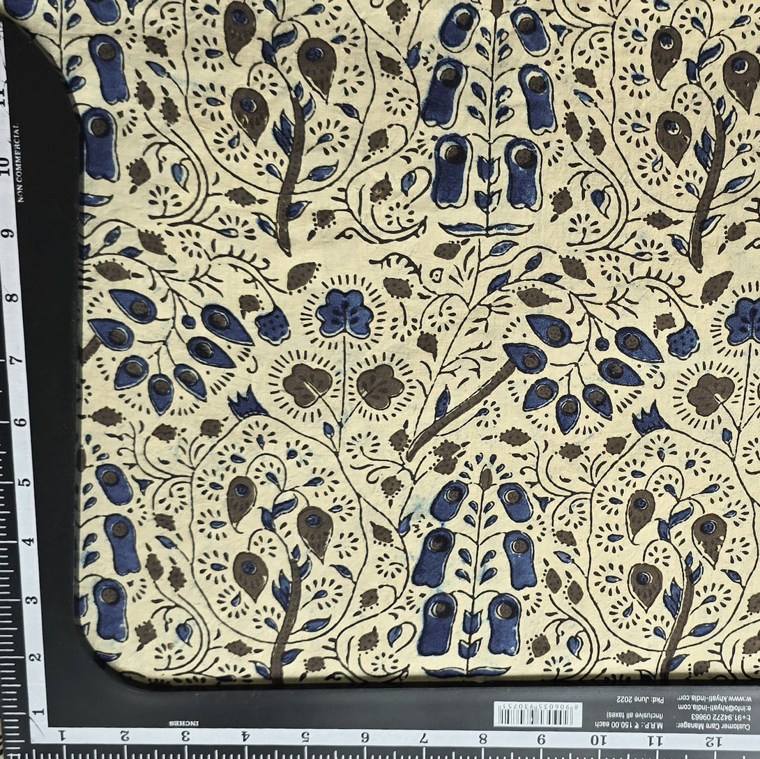 Pure Cotton Gad Ajrak Cream With Rust Blue Flower Garden Hand Block Print Fabric