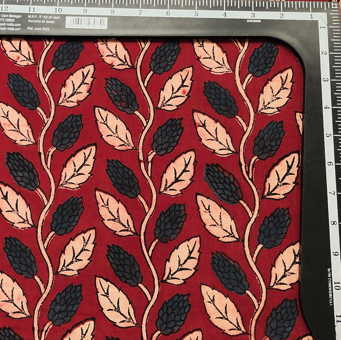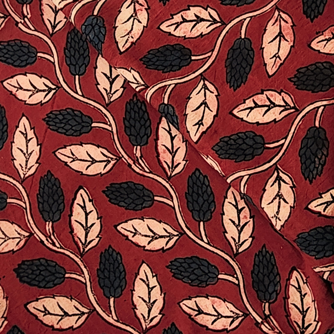Pure Cotton Gad Ajrak Maroon With Blue Leaves Creeper Hand Block Print Fabric