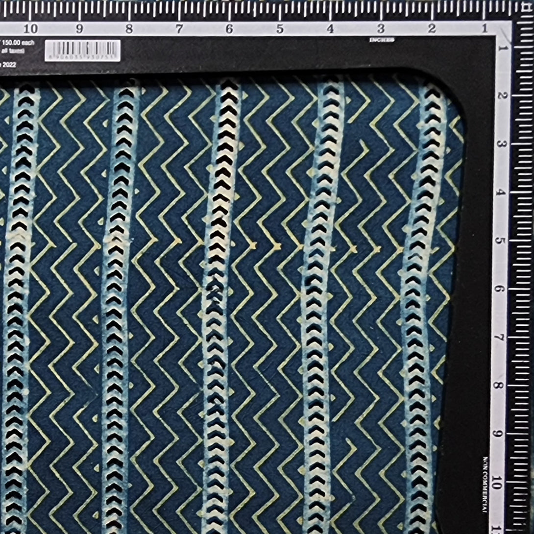 Pure Cotton Gad Ajrak Rust Blue With Rust Cream Zig-Zag Intricate Design Hand Block Print Fabric