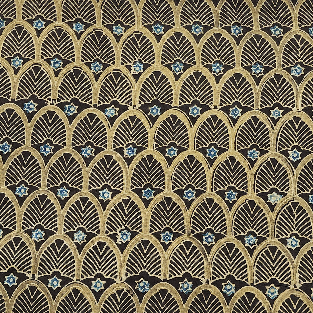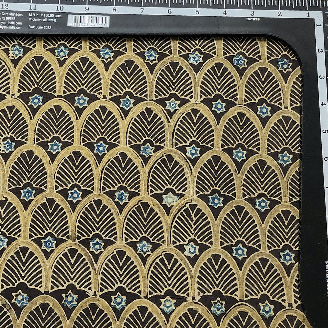Pure Cotton Gad Ajrak Sandy Brown With Repeated Pattern Hand Block Print Fabric