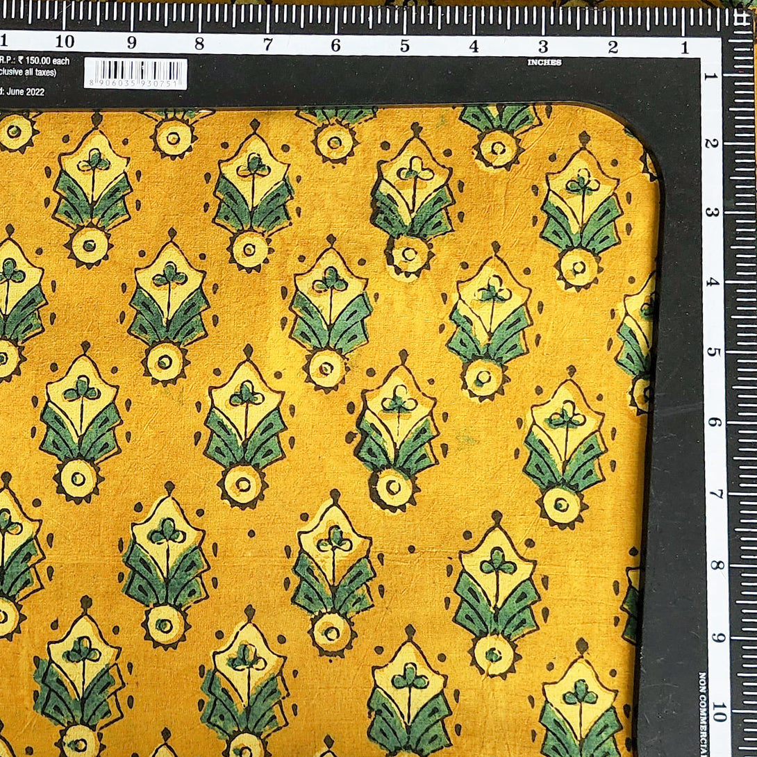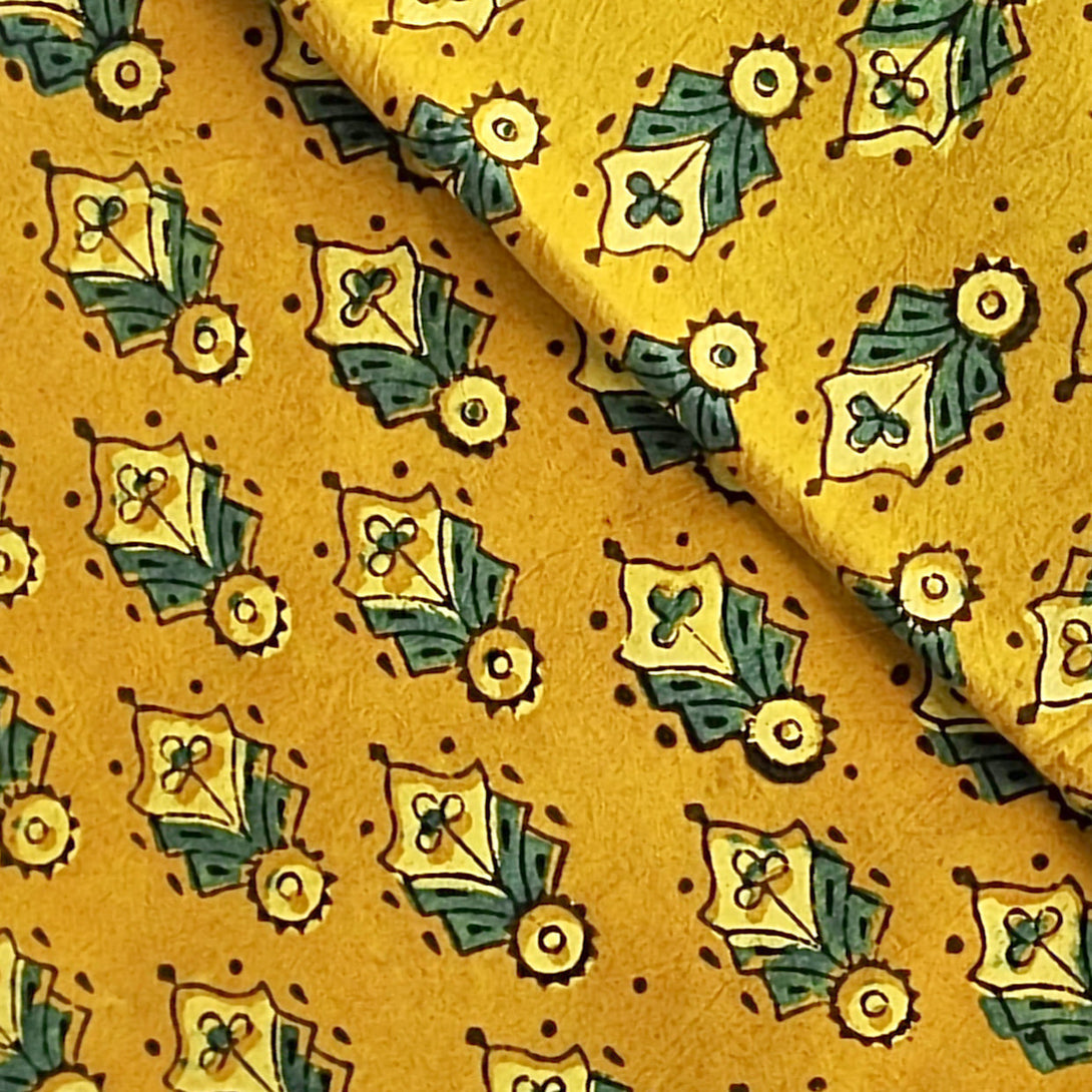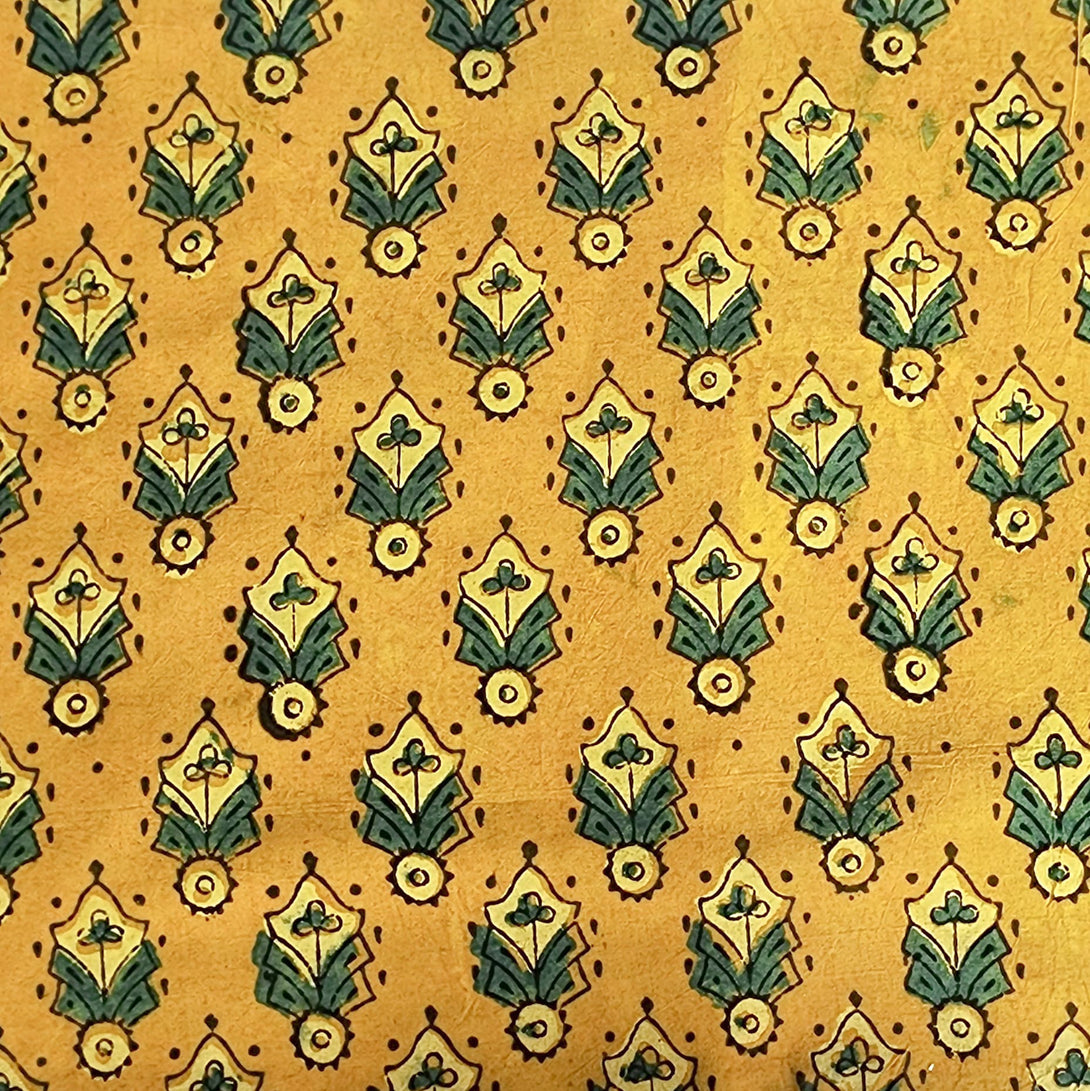Pure Cotton Gad Ajrak Turmeric Yellow With Green Intricate Modif Hand Block Print