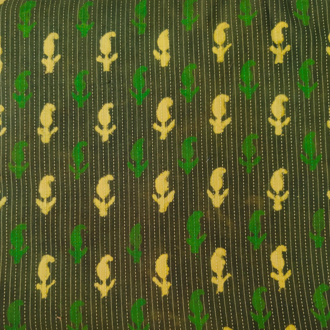 Pre-cut ( 1.60 meter )Pure Cotton Green Dabu Kaatha With Beige Green Kairi Hand Block Print Fabric