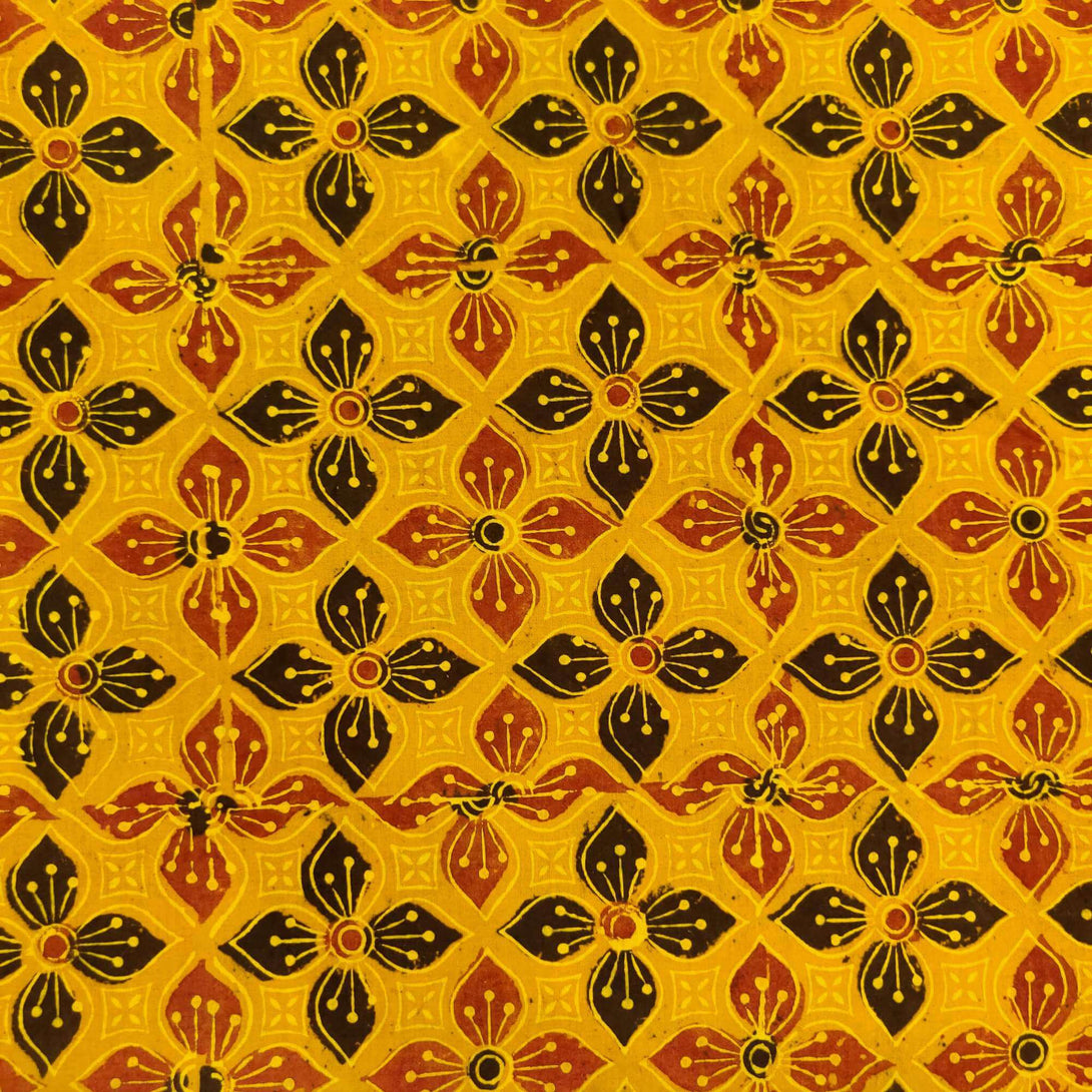 Pure Cotton Haldi Dyed Ajrak With Four Petal Flower Hand Block Print Blouse Fabric ( 90 CM )