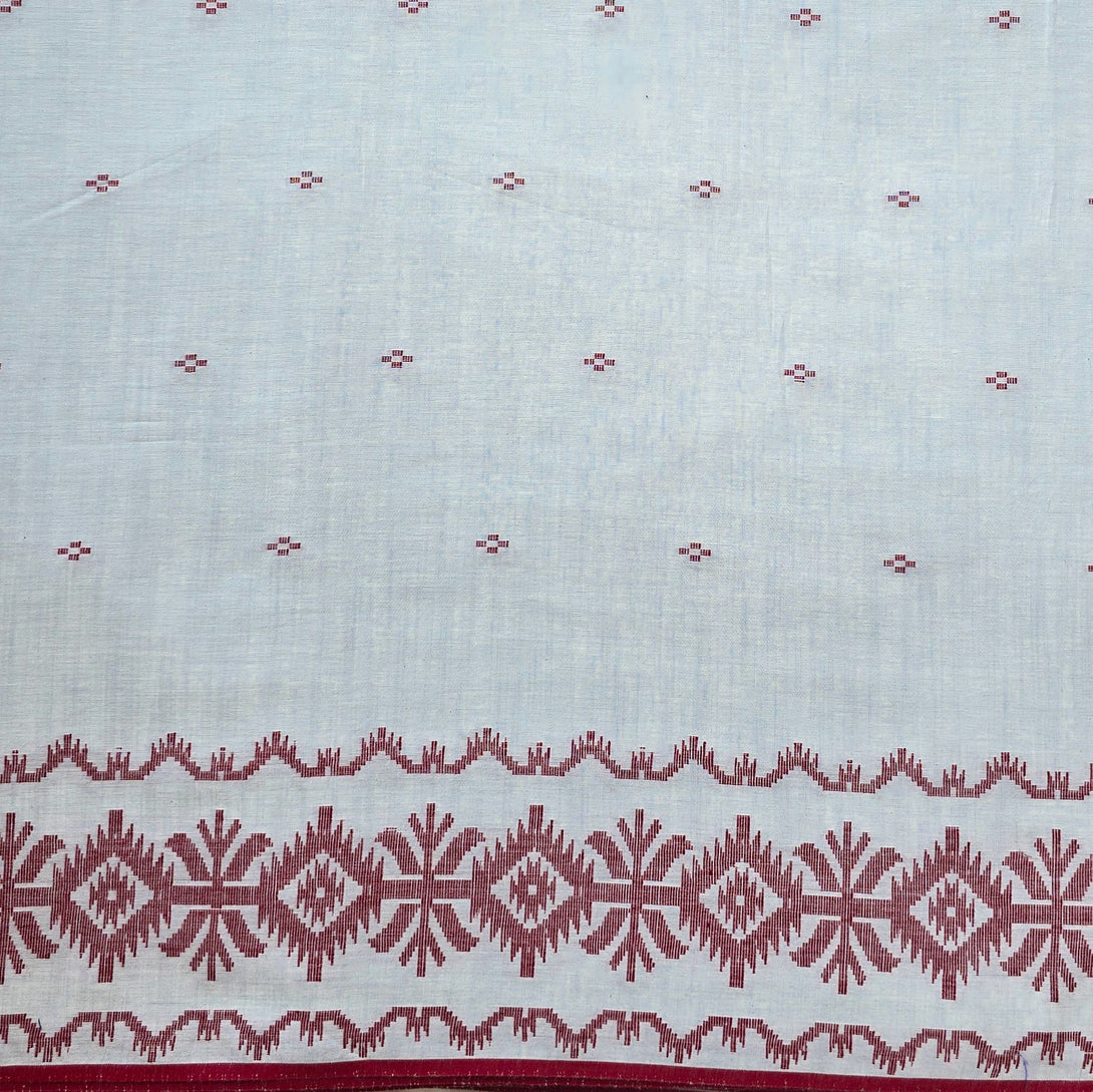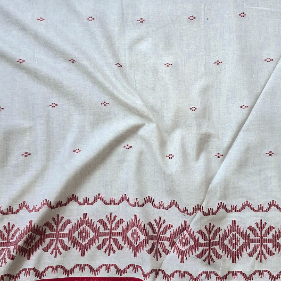 Pure Cotton Handloom Jamdani woven Fabric Light Grey With Red Border Design
