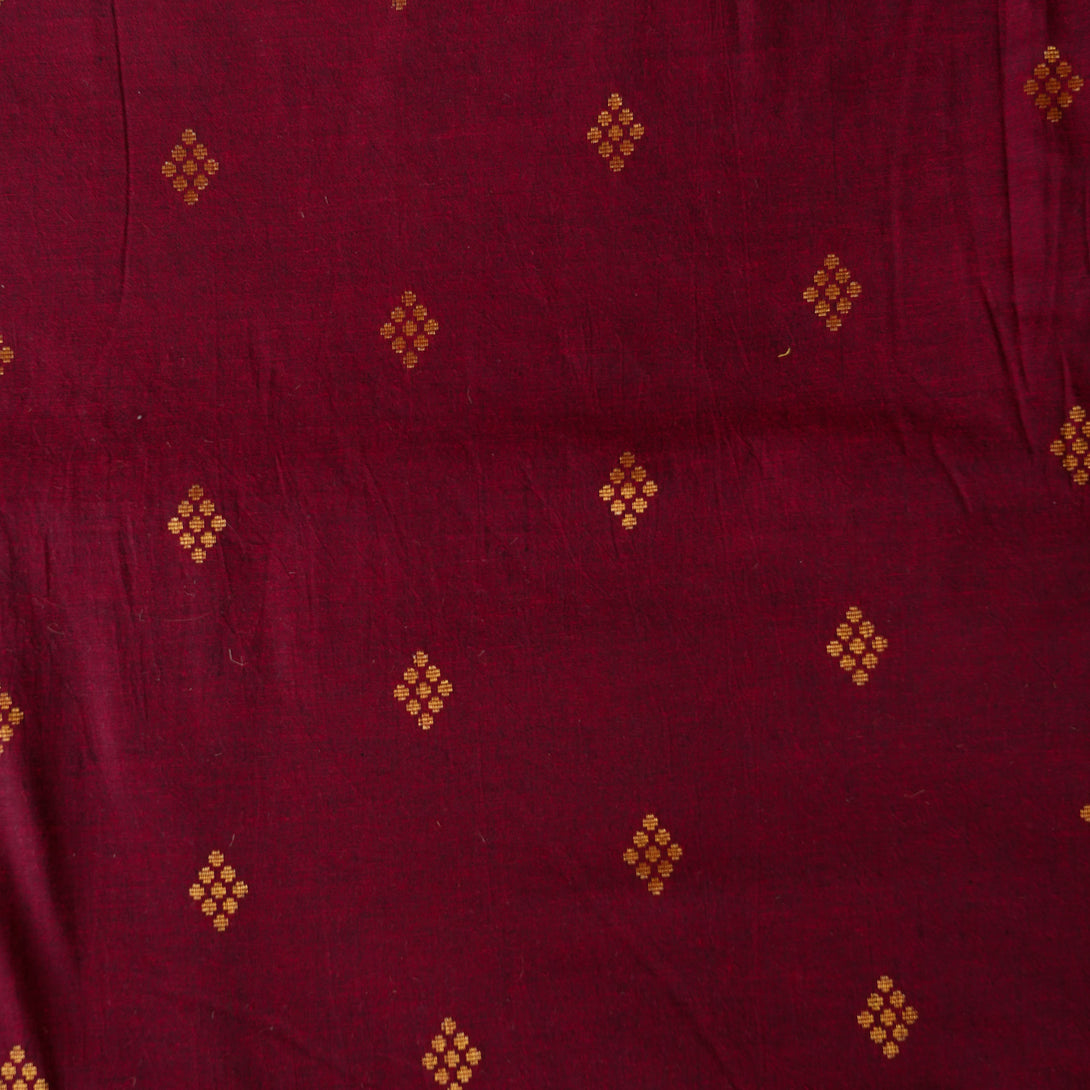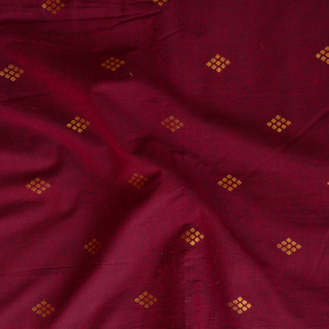 Pure Cotton Handloom Maroon With Gold zari Motif Woven Fabric