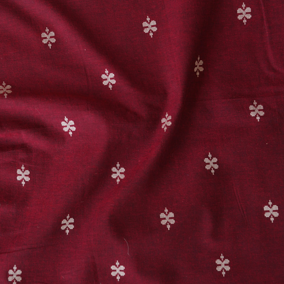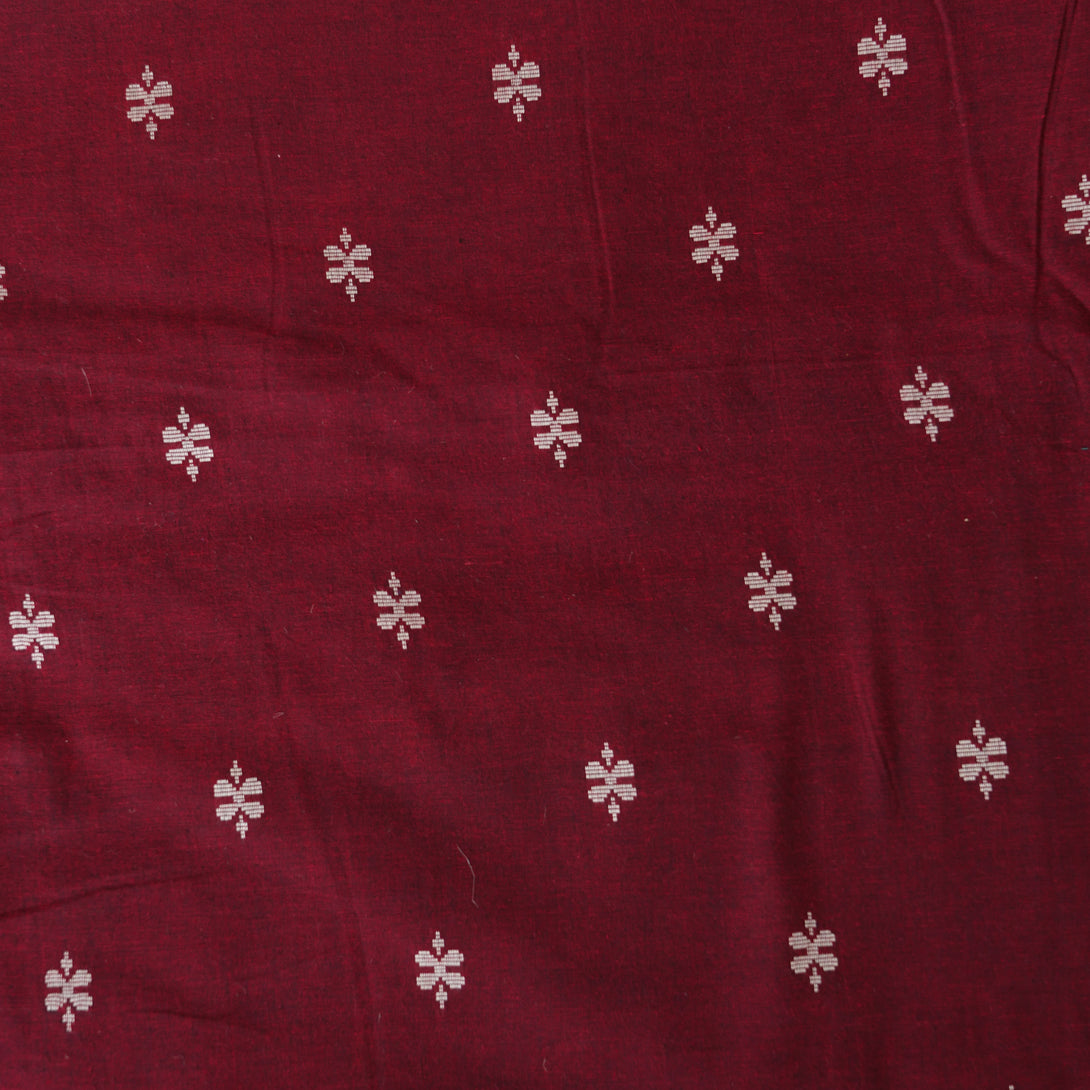 Pure Cotton Handloom Maroon With White Flower Motif Woven Fabric