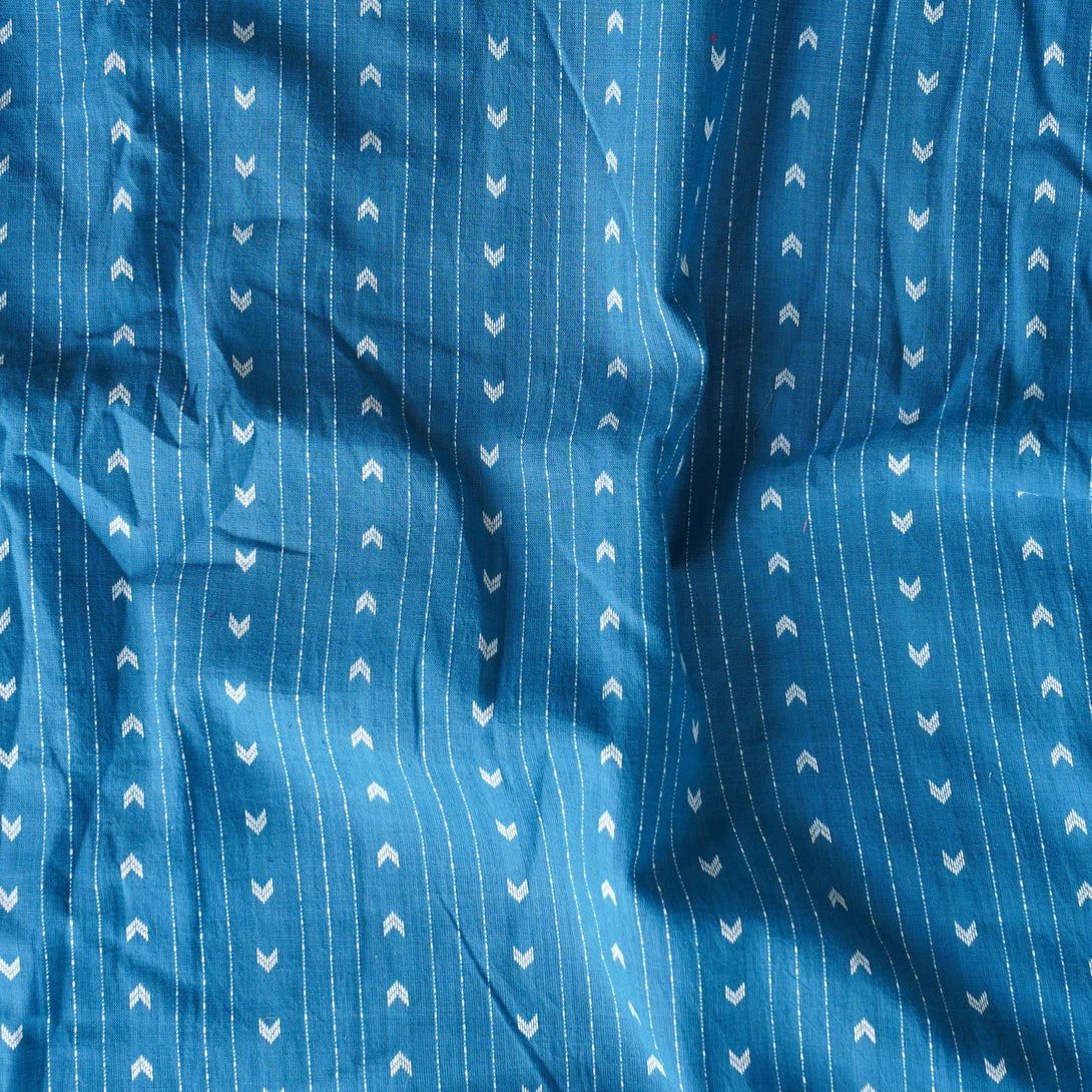 Pure Cotton Handloom teal blue With White Design Stripes Woven Fabric