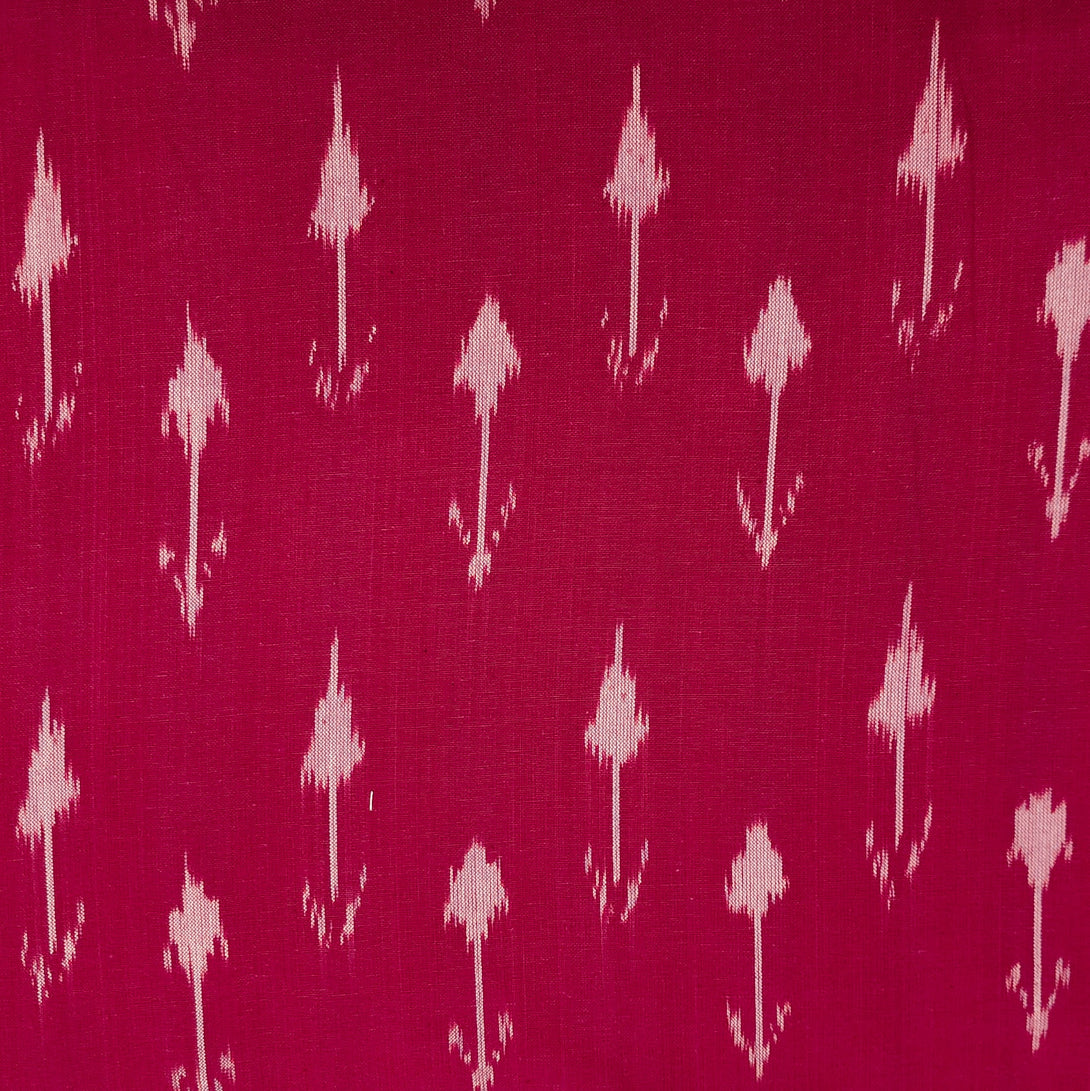 Pre cut 1.90 meter Pure Cotton Ikkat Dark Pink With Cream Flower Motif Hand Woven Fabric