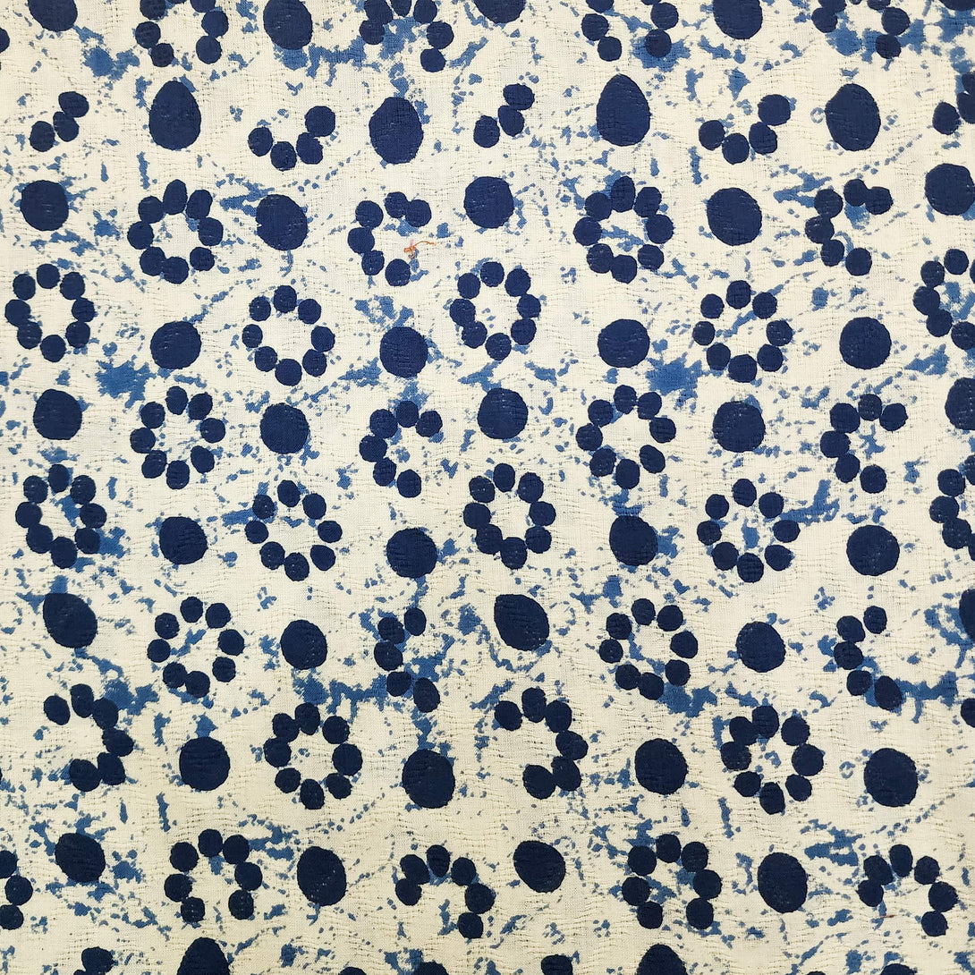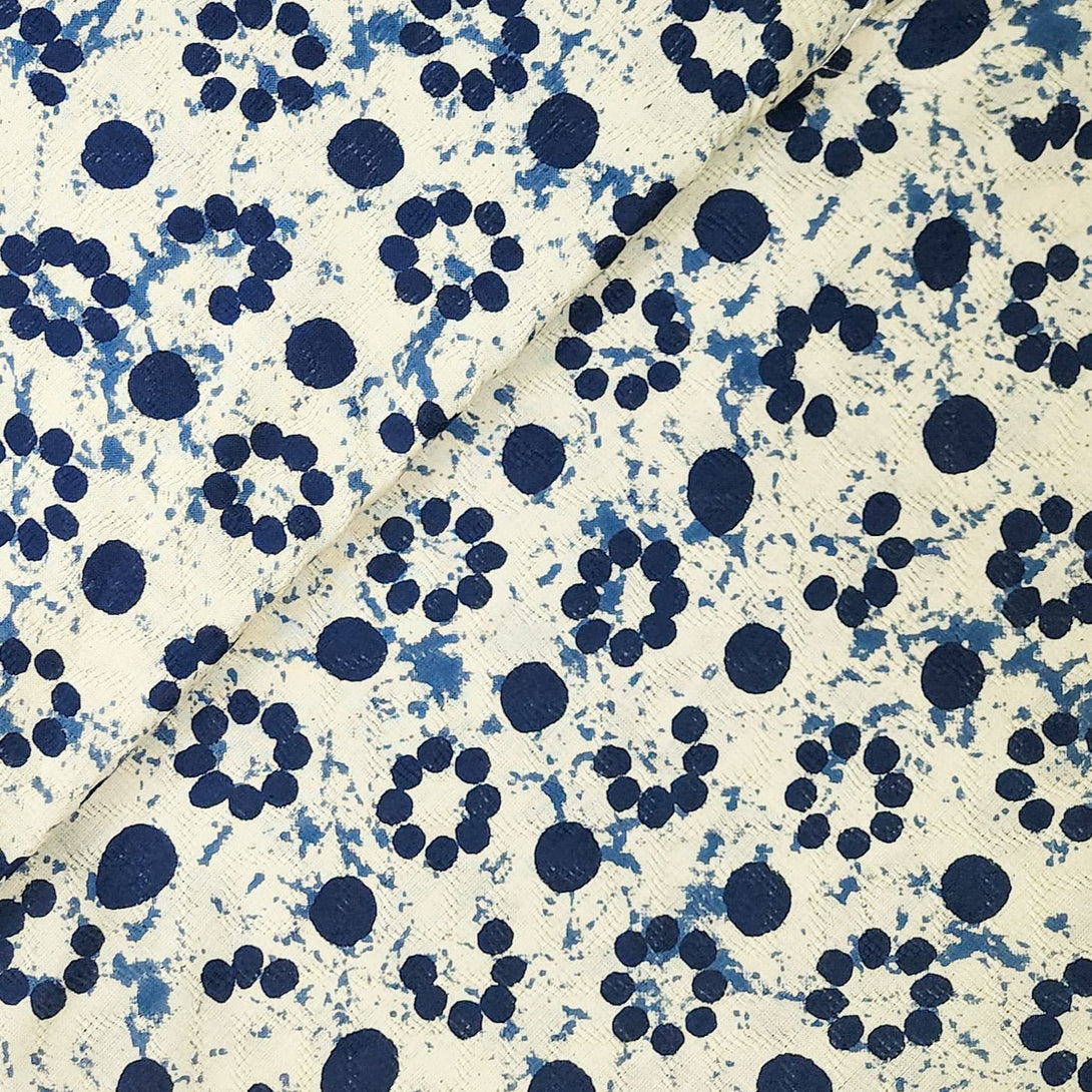 Pure Cotton Indigo With White Intricate Design Hand Woven Fabric