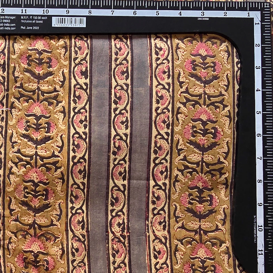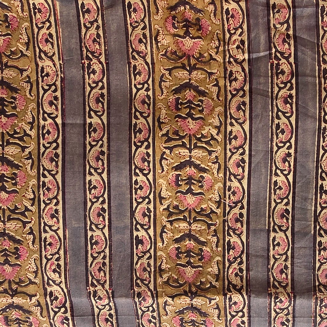 Pure Cotton Jaipuri Beige With Pink and grey Stripe Border Design Hand Block Print Fabric