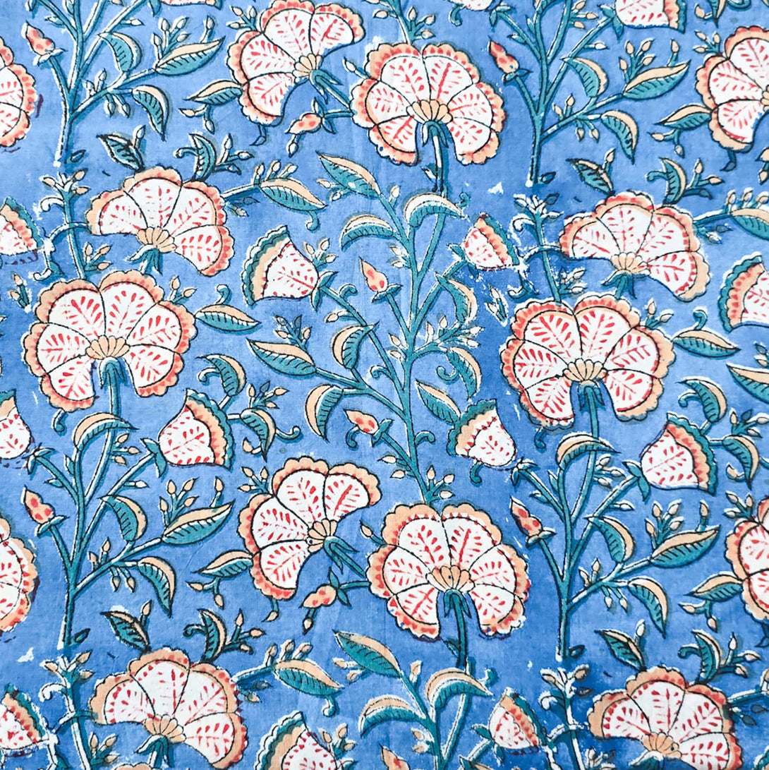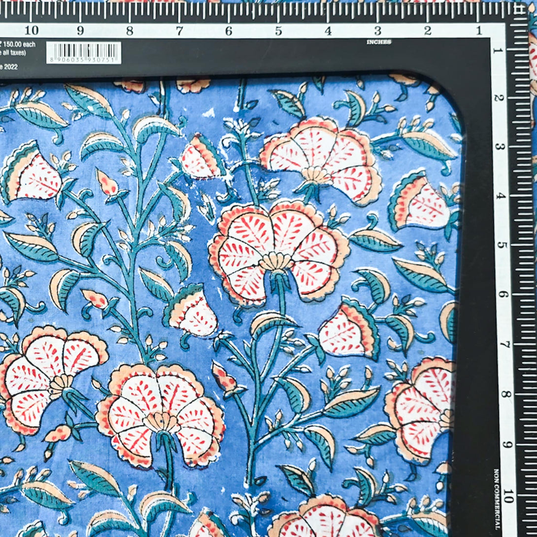 Pure Cotton Jaipuri Blue And Red Flower Creeper Hand Block Print Fabric