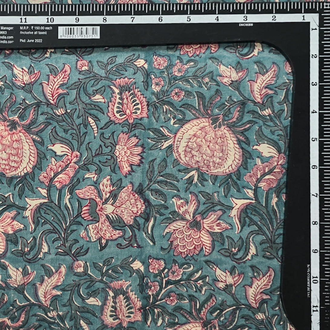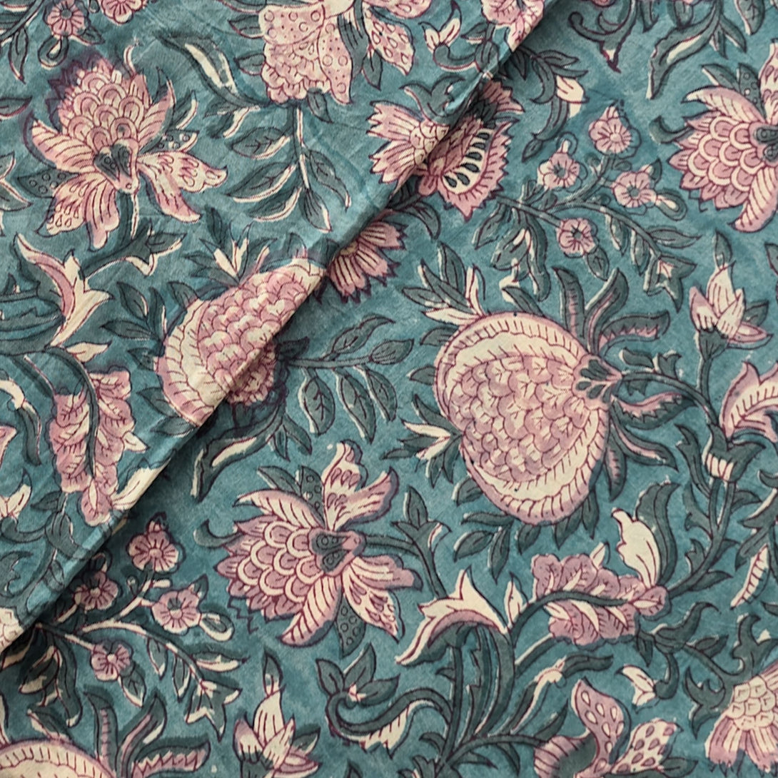 Pure Cotton Jaipuri Blue With Wild Flower Jaal Hand Block Print Fabric