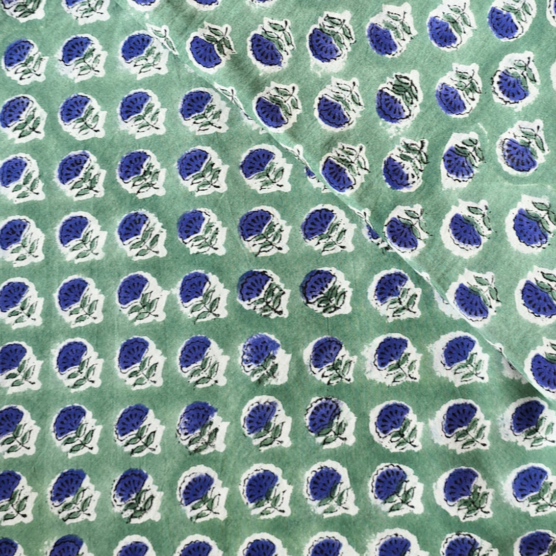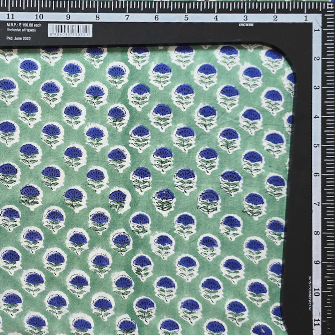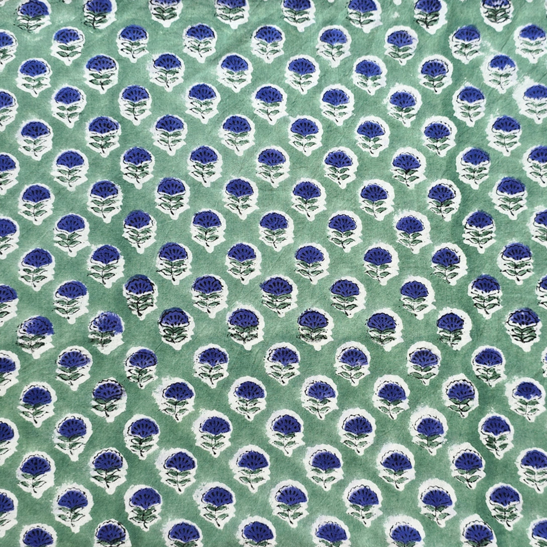 Pure Cotton Jaipuri Green With Purple Flower Motif Hand Block Print Fabric