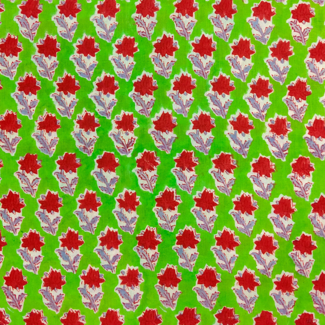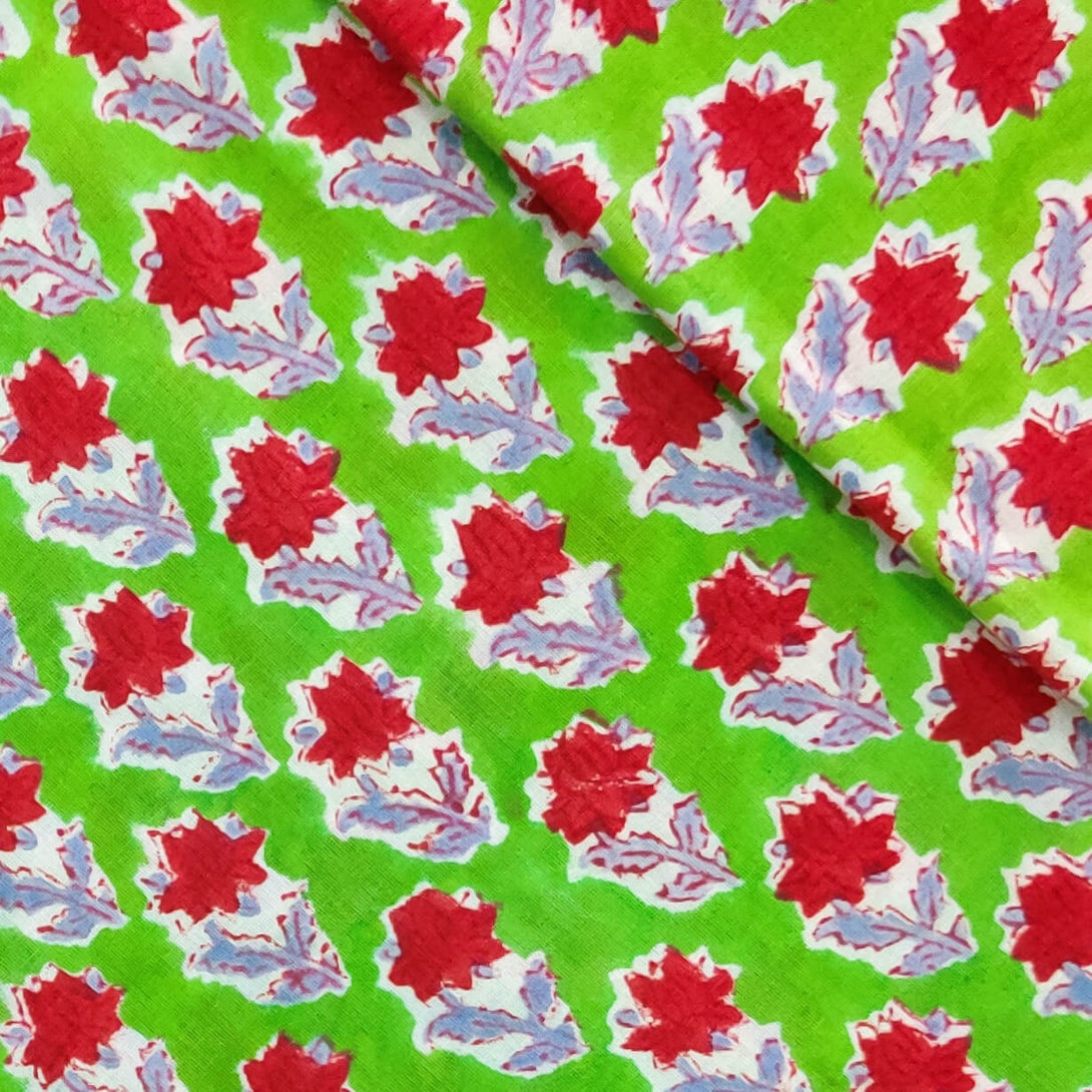 Pure Cotton Jaipuri Green With Rose Motif Hand Block Print Fabric