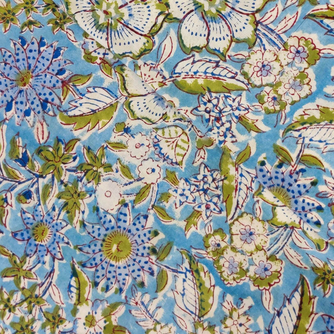Pure Cotton Jaipuri Light Blue With Wild Flower Jaal Hand Block Print Blouse Fabric (92 cm)