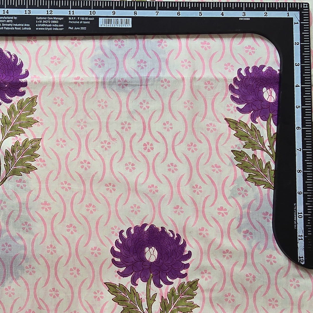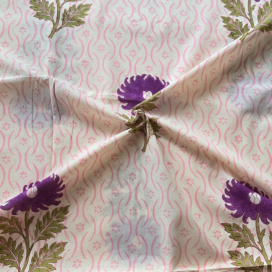 Pure Cotton Jaipuri Off White With Purple Flower Motif Hand Block Print Fabric