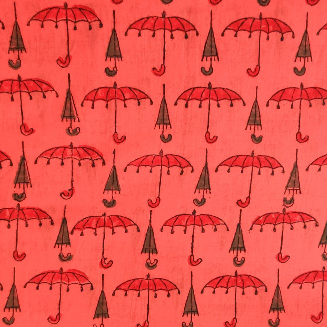 Pure Cotton Jaipuri Pastel Crimson With Umbrella Hand Block Print Fabric