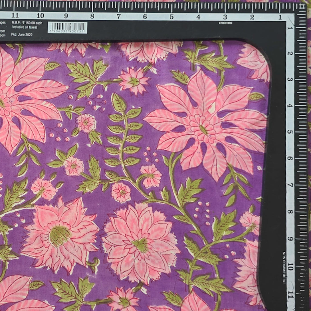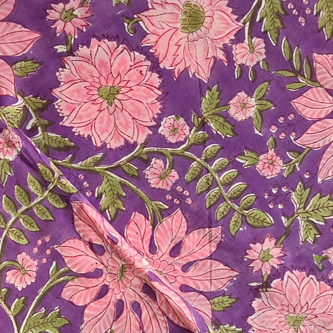 Pure Cotton Jaipuri Purple With Pink Big Flower Jaal Hand Block Print Fabric
