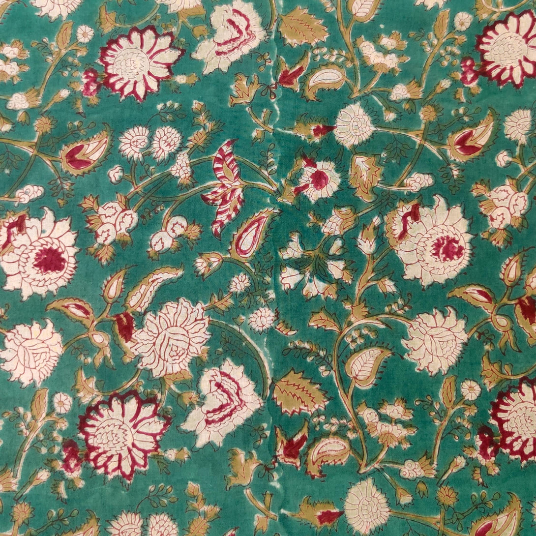 Pure Cotton Jaipuri Teal With White And Maroon Jaal Hand Block Print Fabric