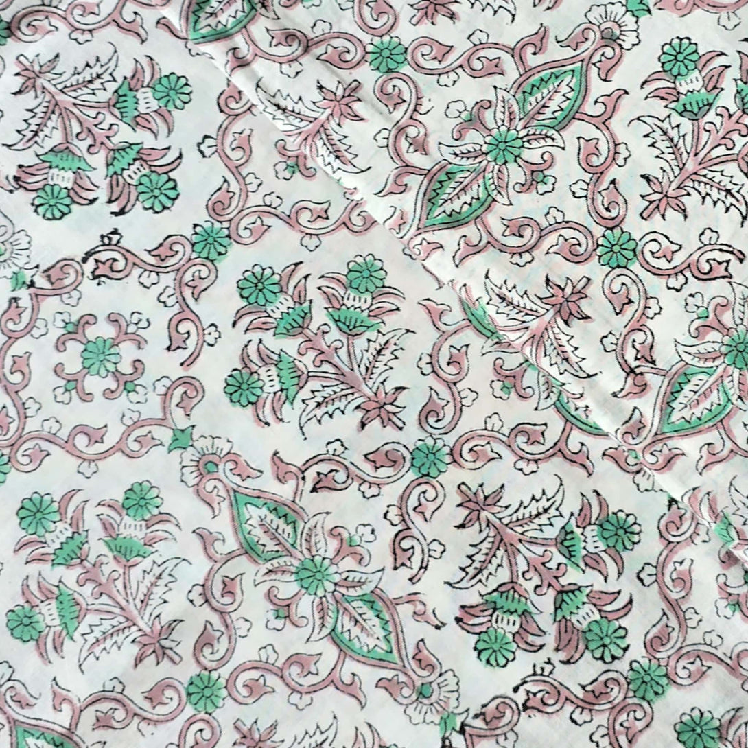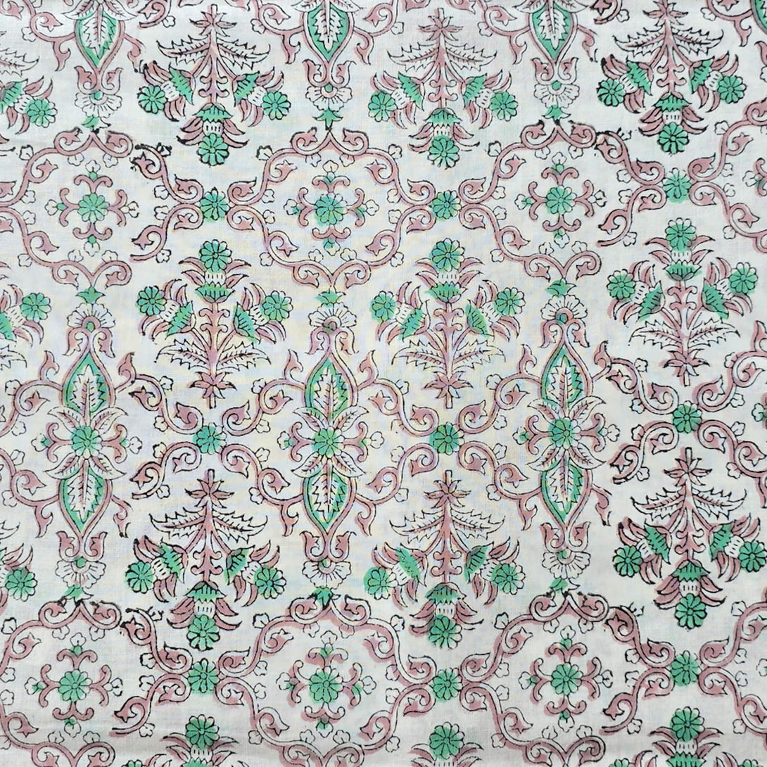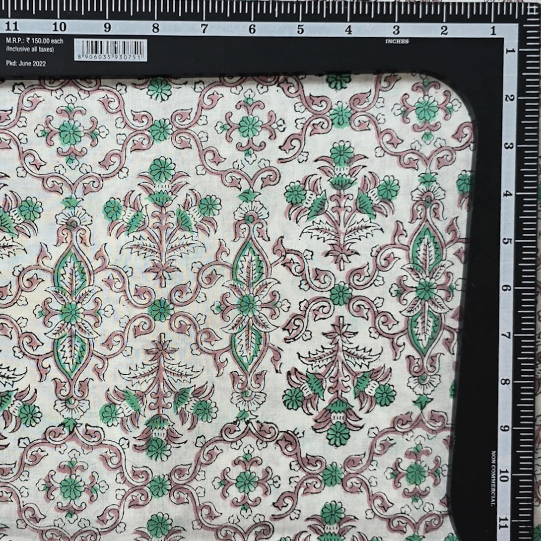 Pure Cotton Jaipuri White With Flower Intricate Design Hand Block Print Fabric