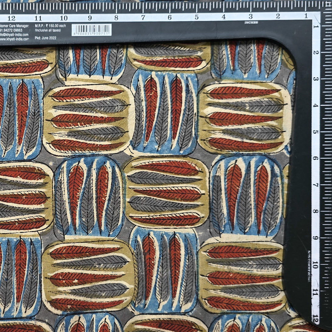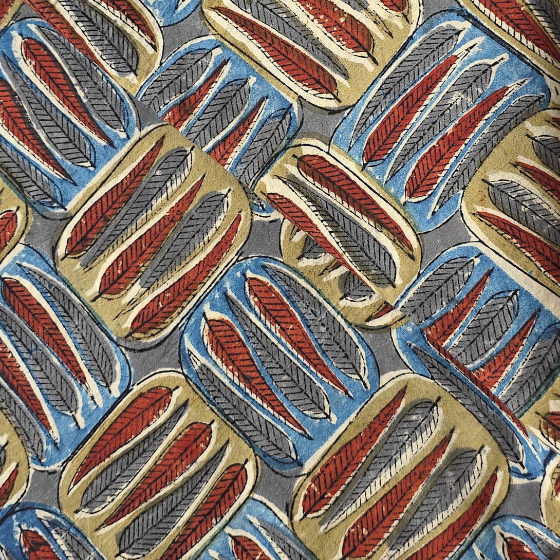 Pure Cotton Kalamkari Blue With Mehandi Green Leaves Motif Hand Block Print Fabric