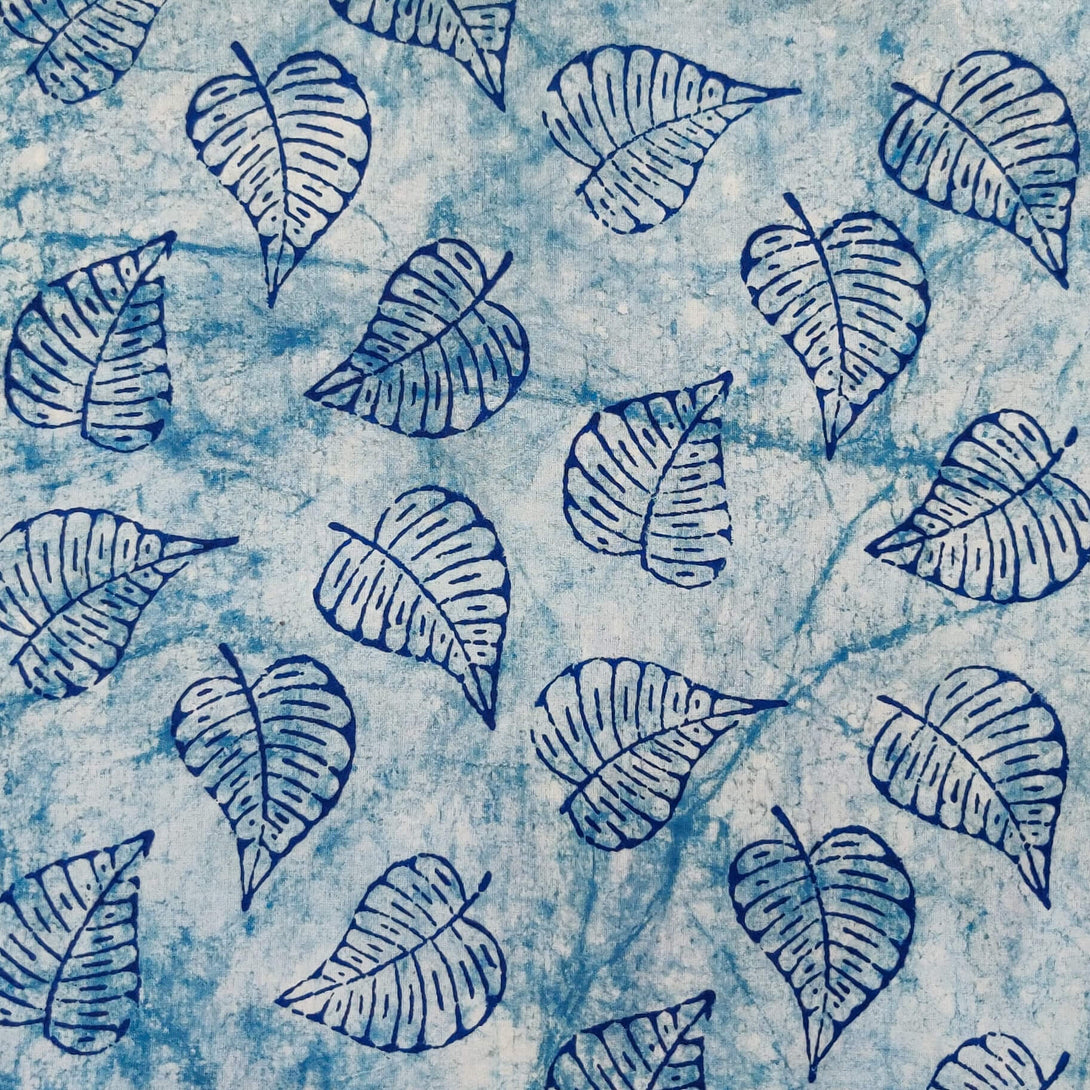 Pure Cotton Light Indigo With Dark Indigo Leaf Motif Hand Block Print Fabric