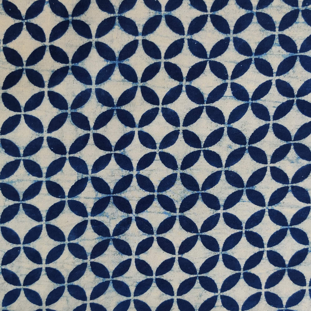 Pure Cotton Light Indigo With Geometric Four Petal Flower Hand Block Print blouse piece Fabric(1 meter)