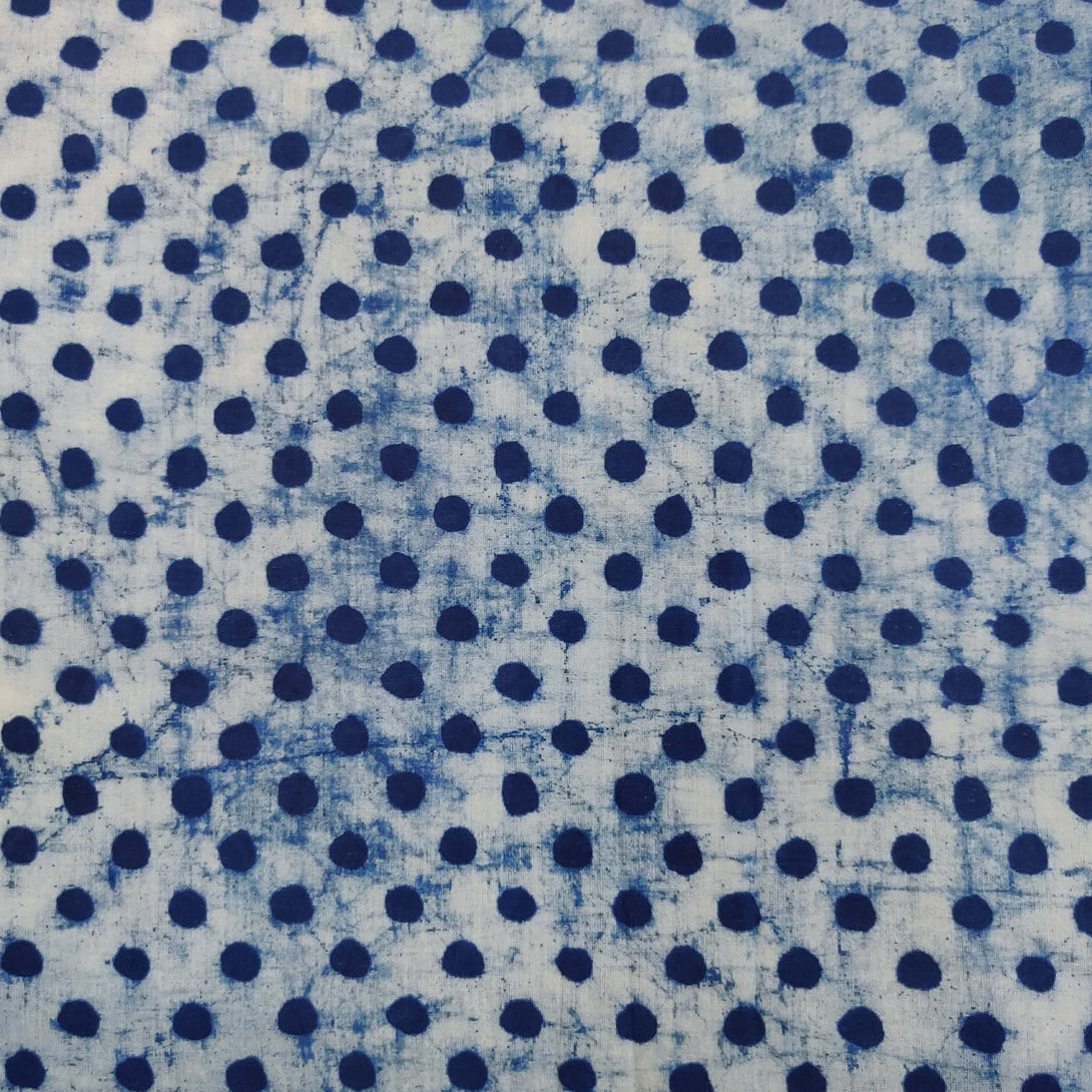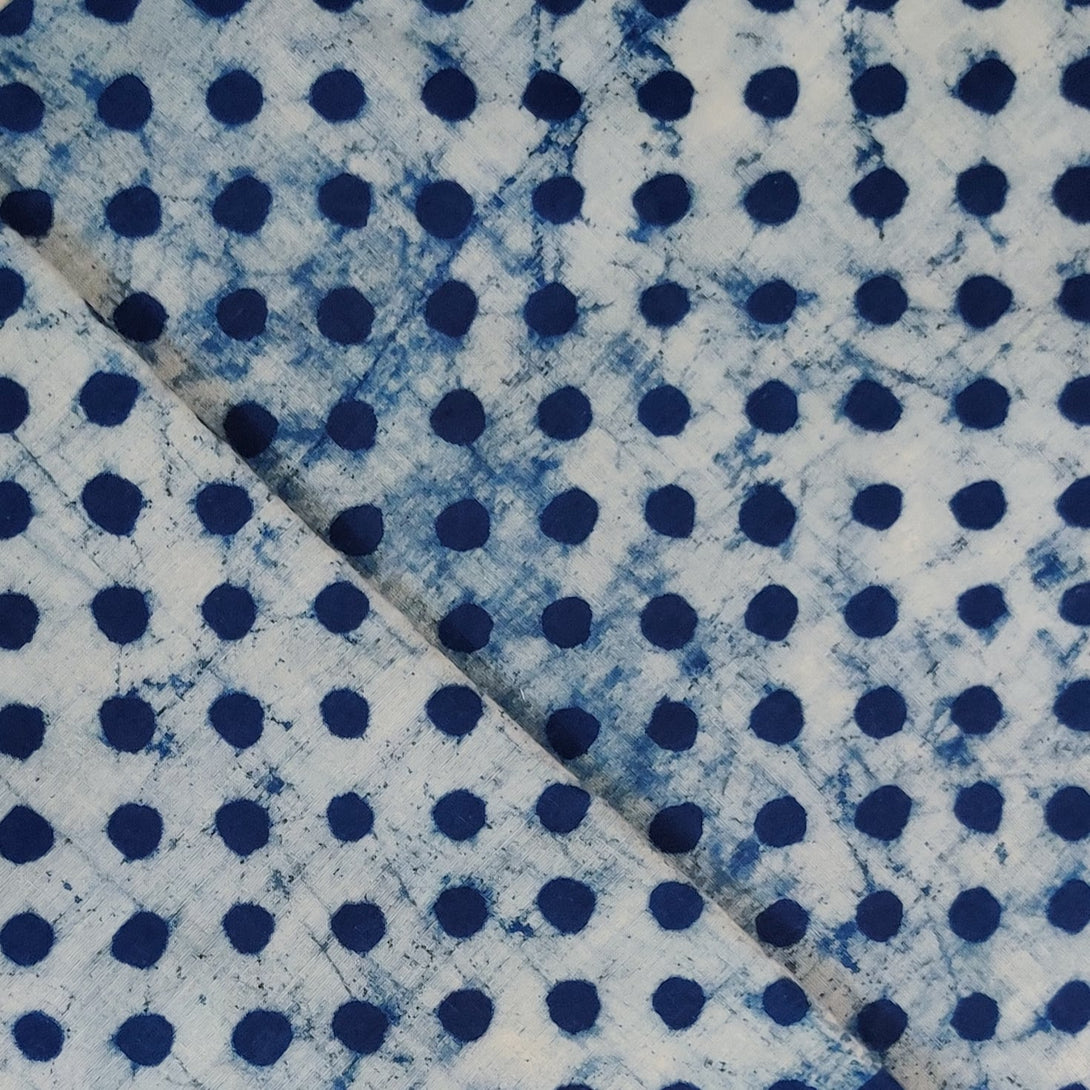 Pure Cotton Light Indigo With Polka Hand Block Print Fabric