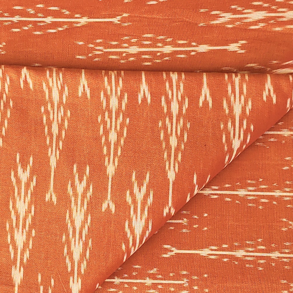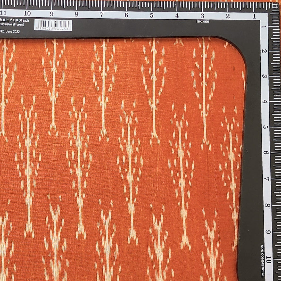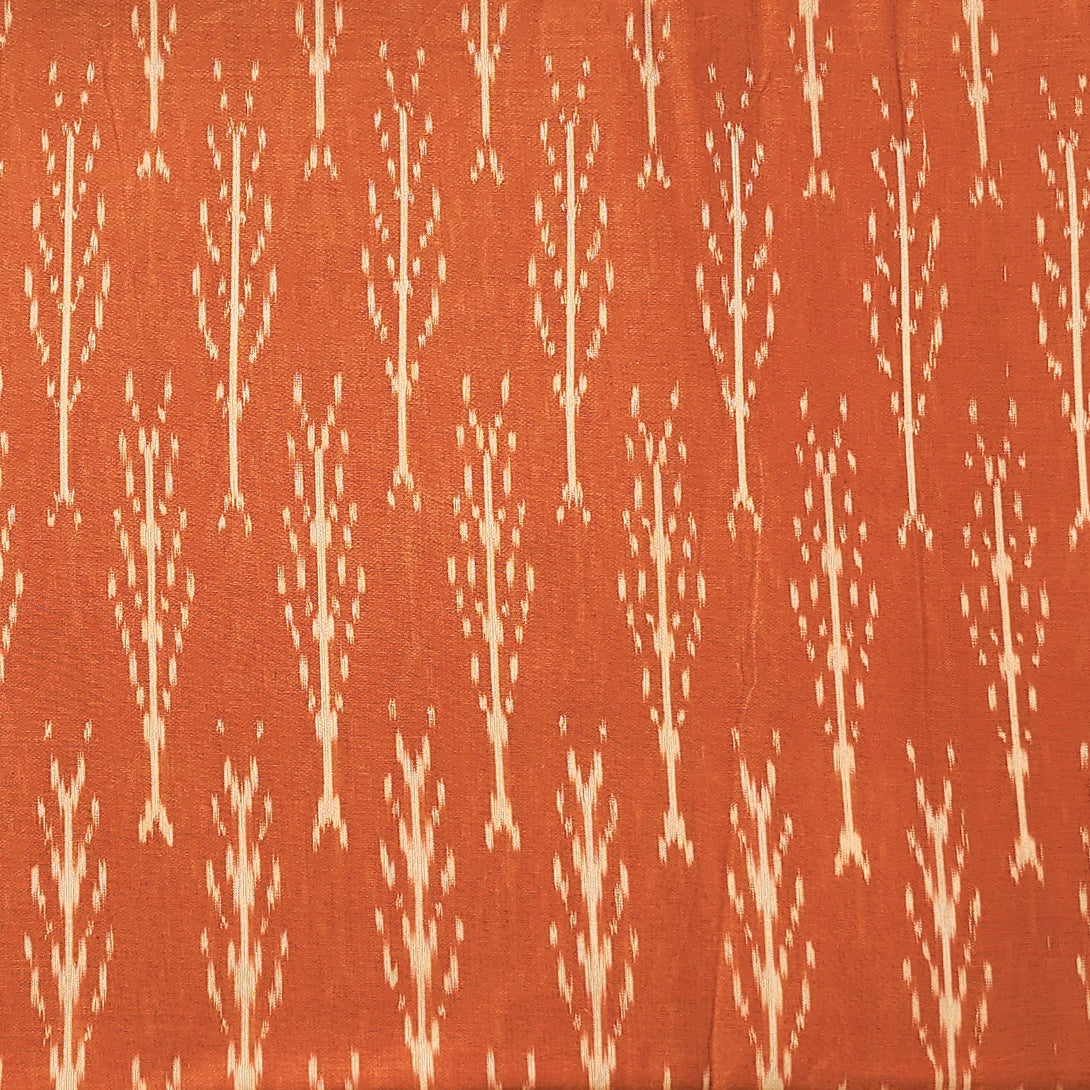 Pure Cotton Mercerised Ikkat Orange With Off White Plant Motif Woven Fabric