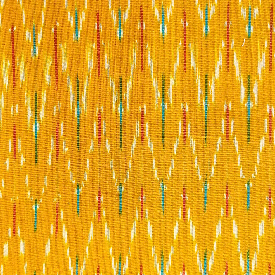 Pure Cotton Mustard Ikkat With Cream Green And Red Zig Zag Weave Woven Blouse Fabric ( 1 Meter )