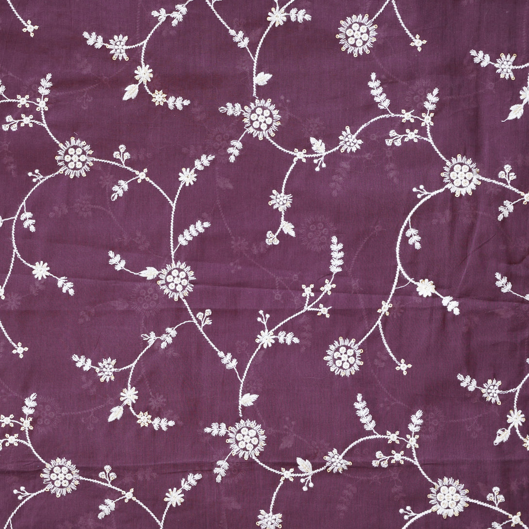 Pure Cotton Old Mauve And White Flower Jaal With Gold Sequence Embroidery Fabric