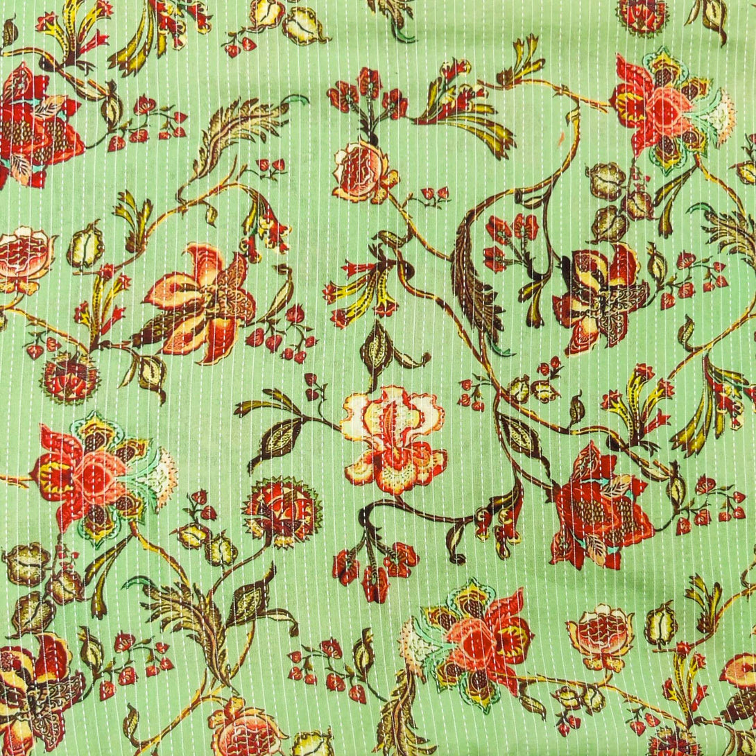 Pure Cotton Pastel Mint Green Kaatha With Wild Jaal blouse piece Fabric (0.80 meter)