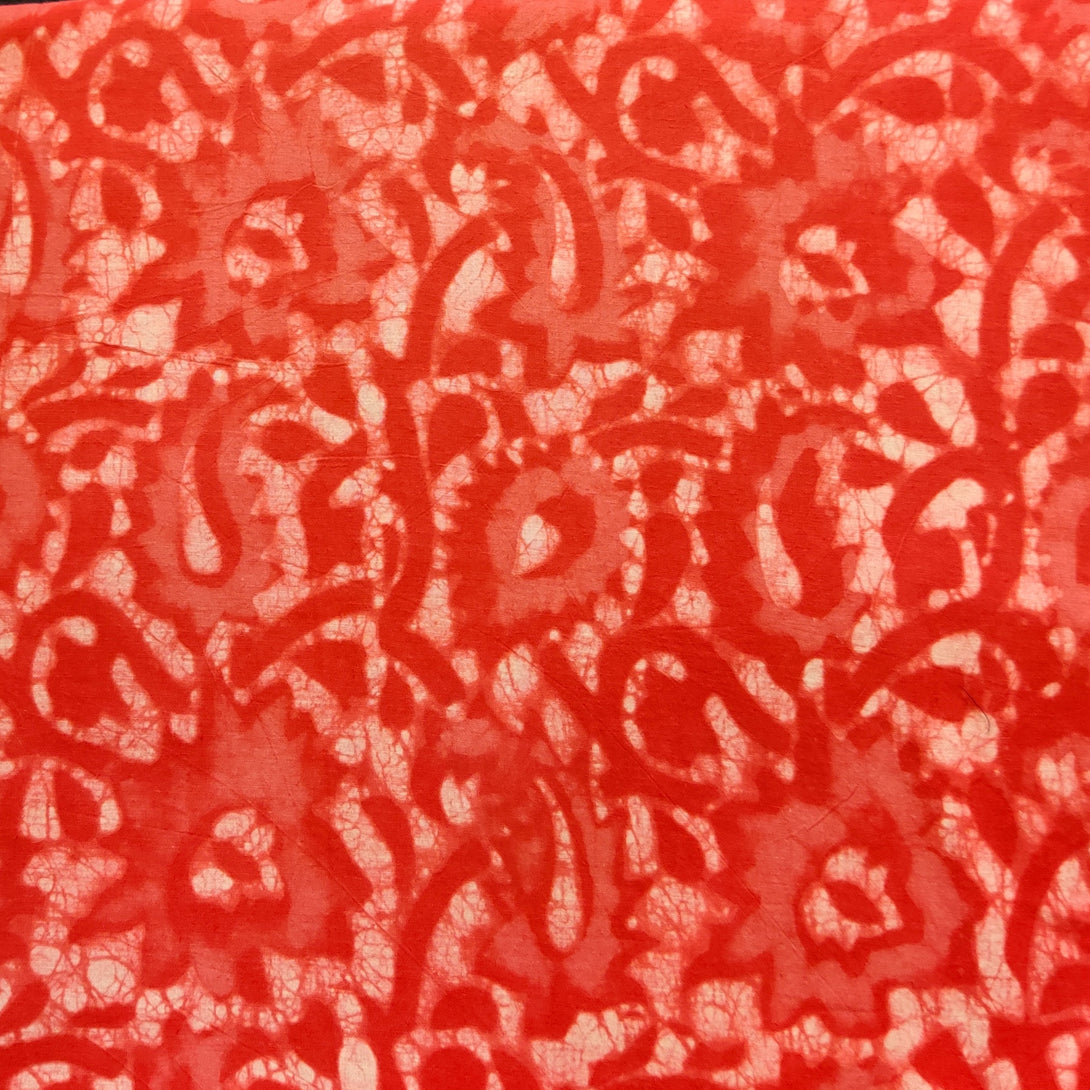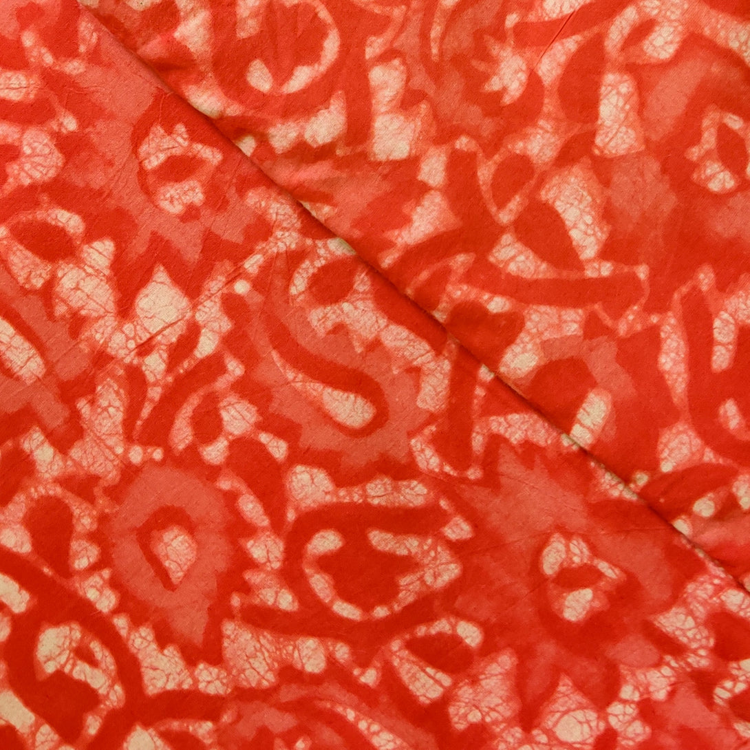 Pure Cotton Peachy Orange With Wild Batik Flower Jaal Hand Block Print Fabric