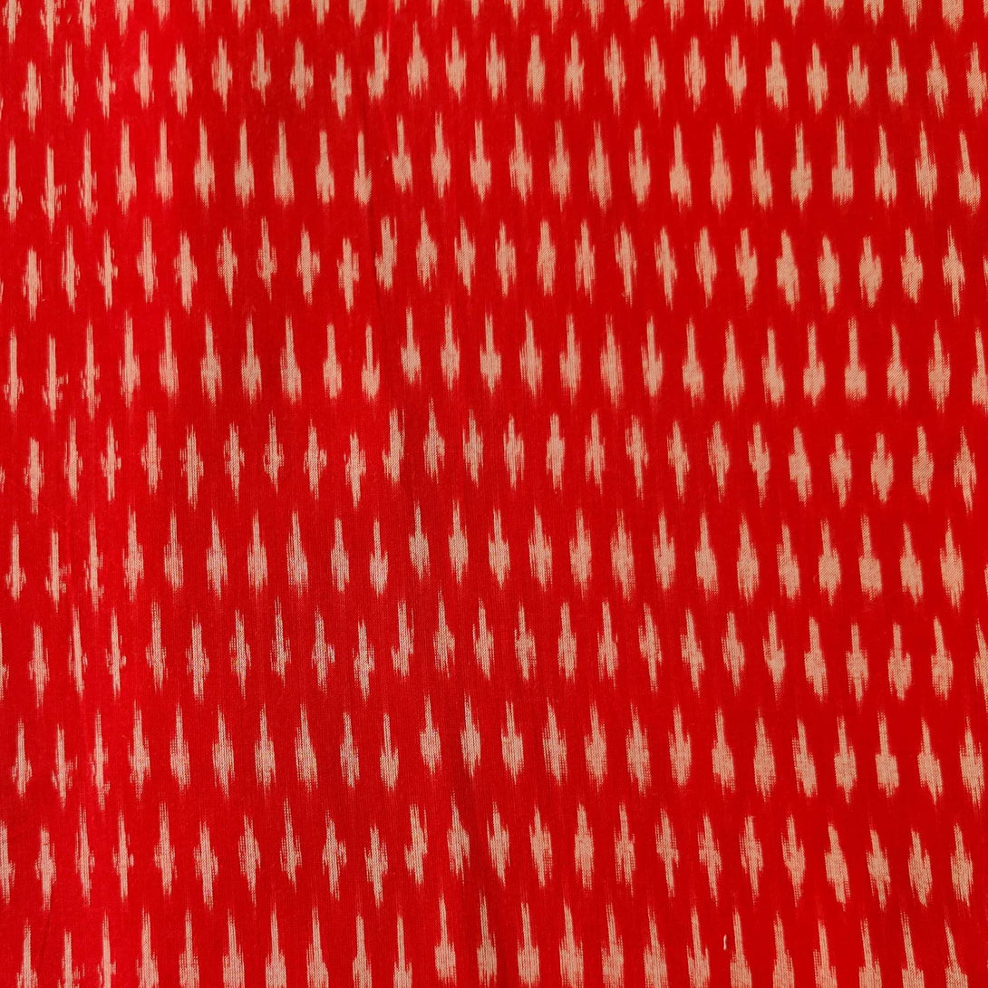Pure Cotton Red Mercerised Ikkat With Tiny Weaves Handwoven Blouse Fabric ( 0.85 Cm )