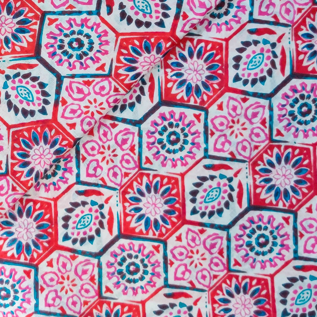 Pure Cotton Screen Print With Shades Of Pink And Red Print Fabric