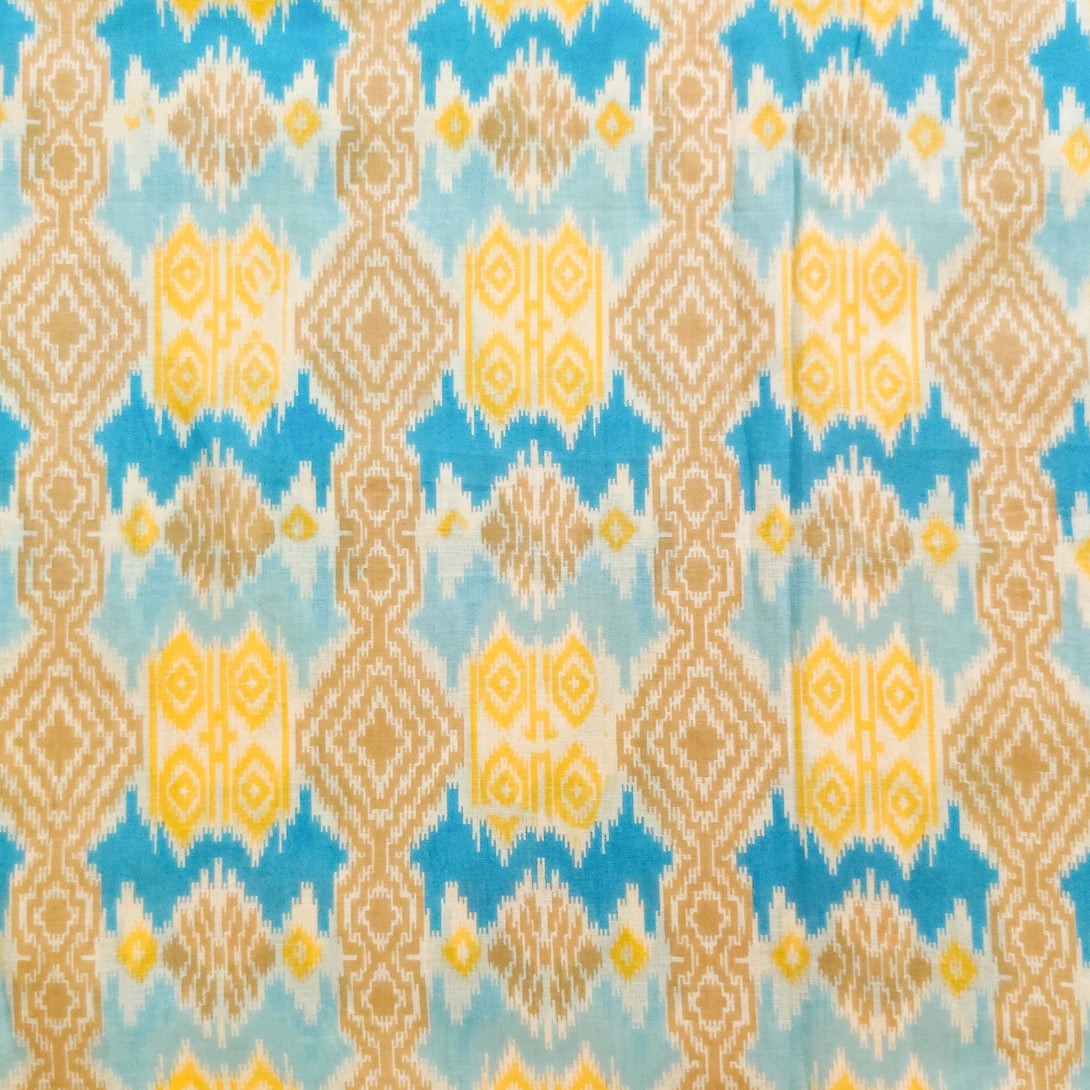 Pure Cotton Shades Of Blue Yellow Brown Patola Screen Print blouse piece Fabric (1.30 meter)