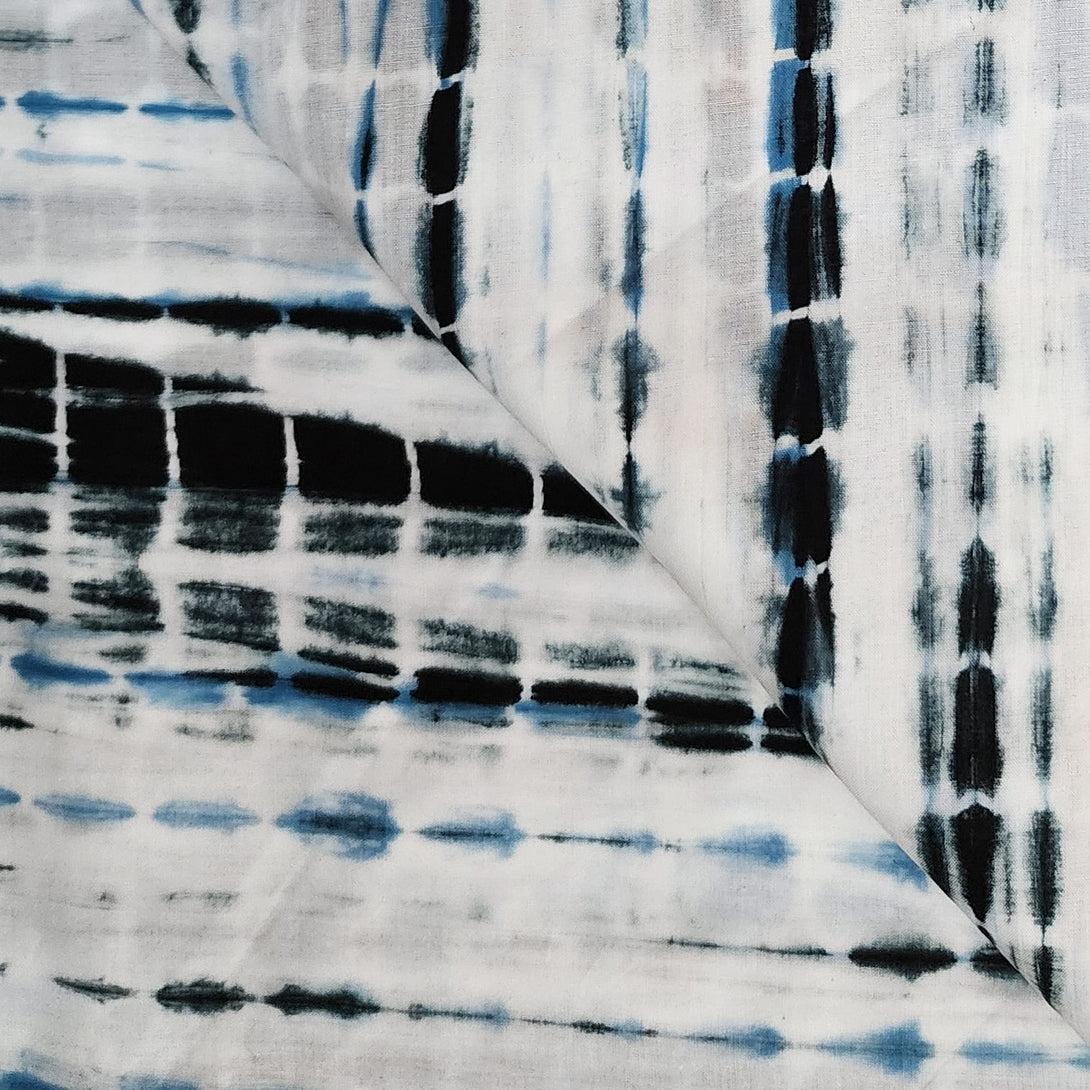 Pure Cotton Shibori Black Blue Tie And Dye Hand Made Fabric