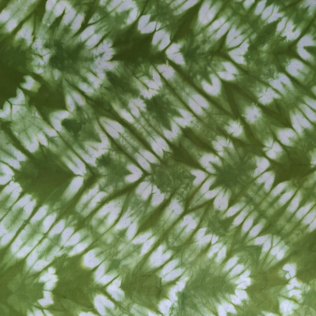 Pure Cotton Shibori White And Green Zig Zag Tie And Dye Hand Dyed Fabric