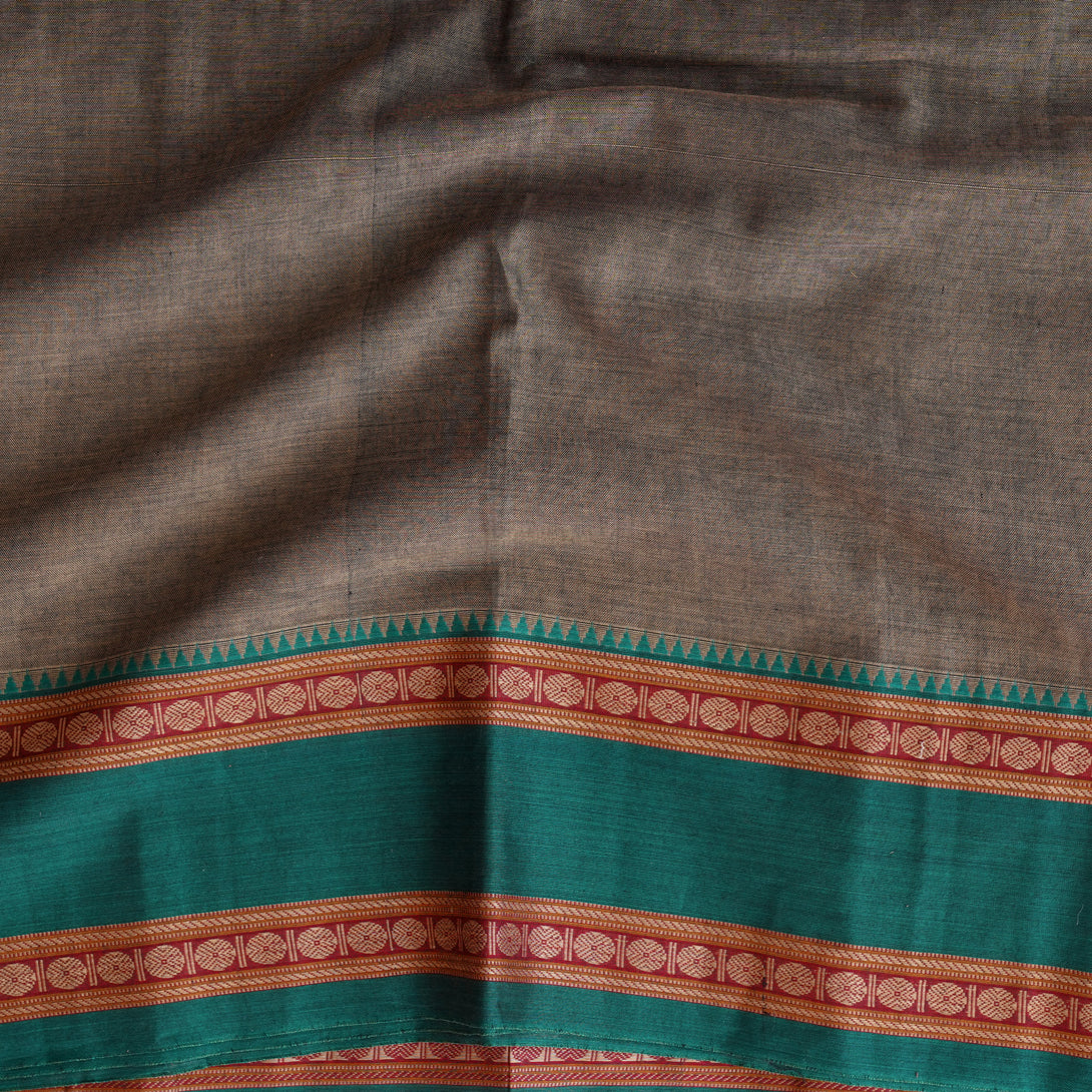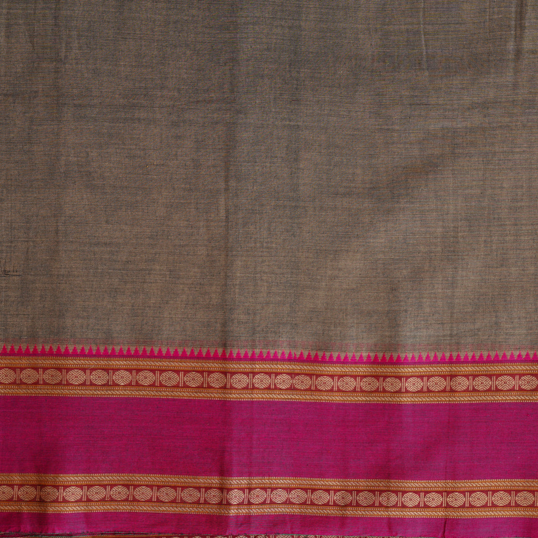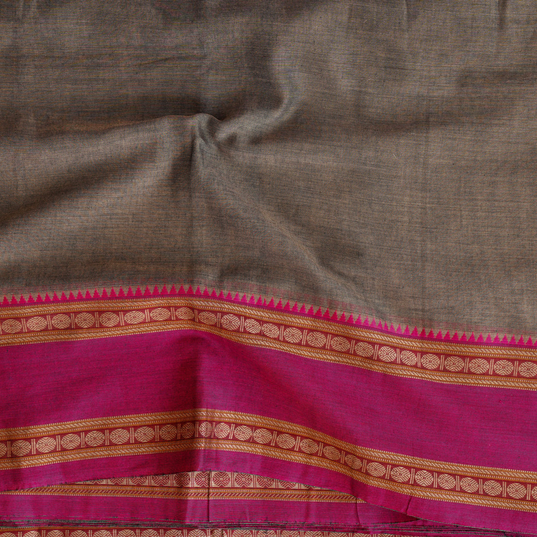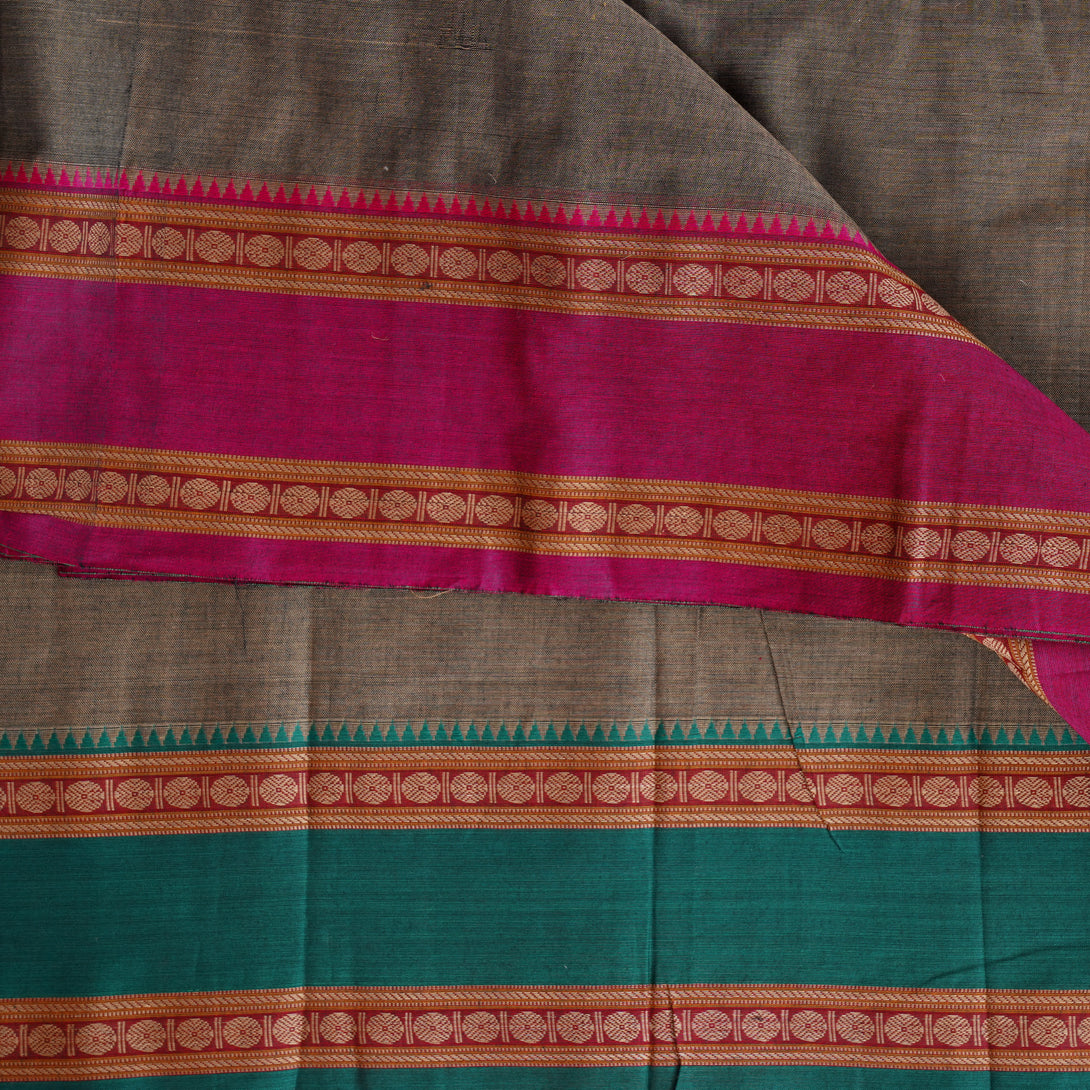 Pure Cotton Soft Narayanpet Dark Brown And Pink With Green Traditional Ganga Yamuna Border Fabric