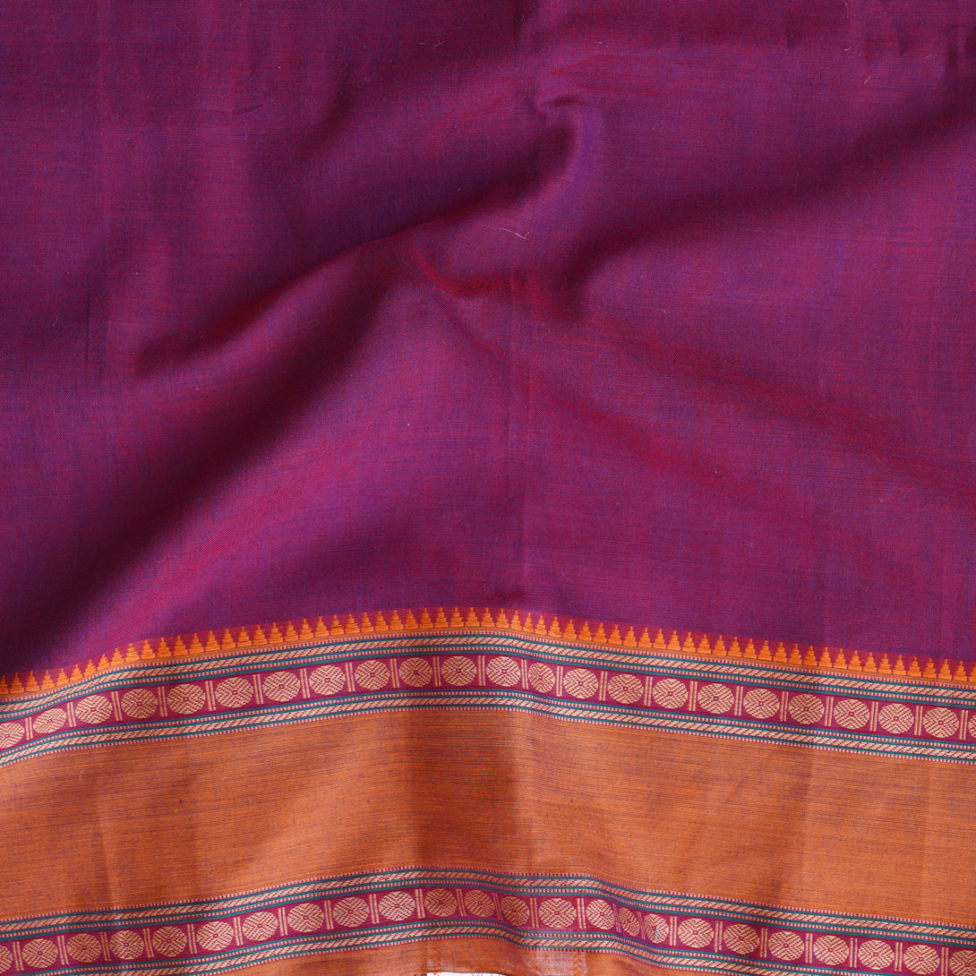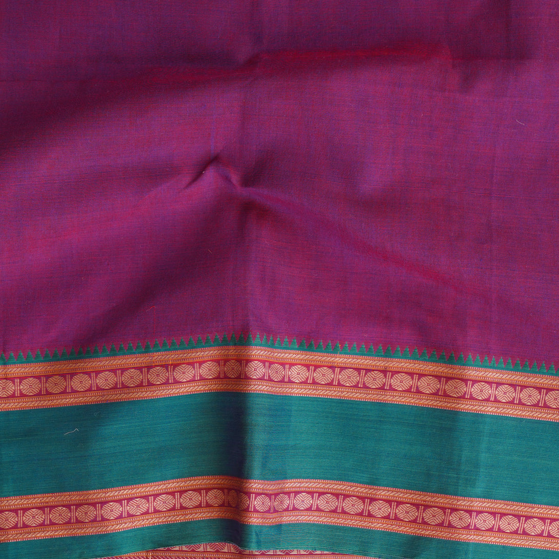 Pure Cotton Soft Narayanpet Shades Of Purple And Brown With Teal Traditional Ganga Yamuna Border Fabric