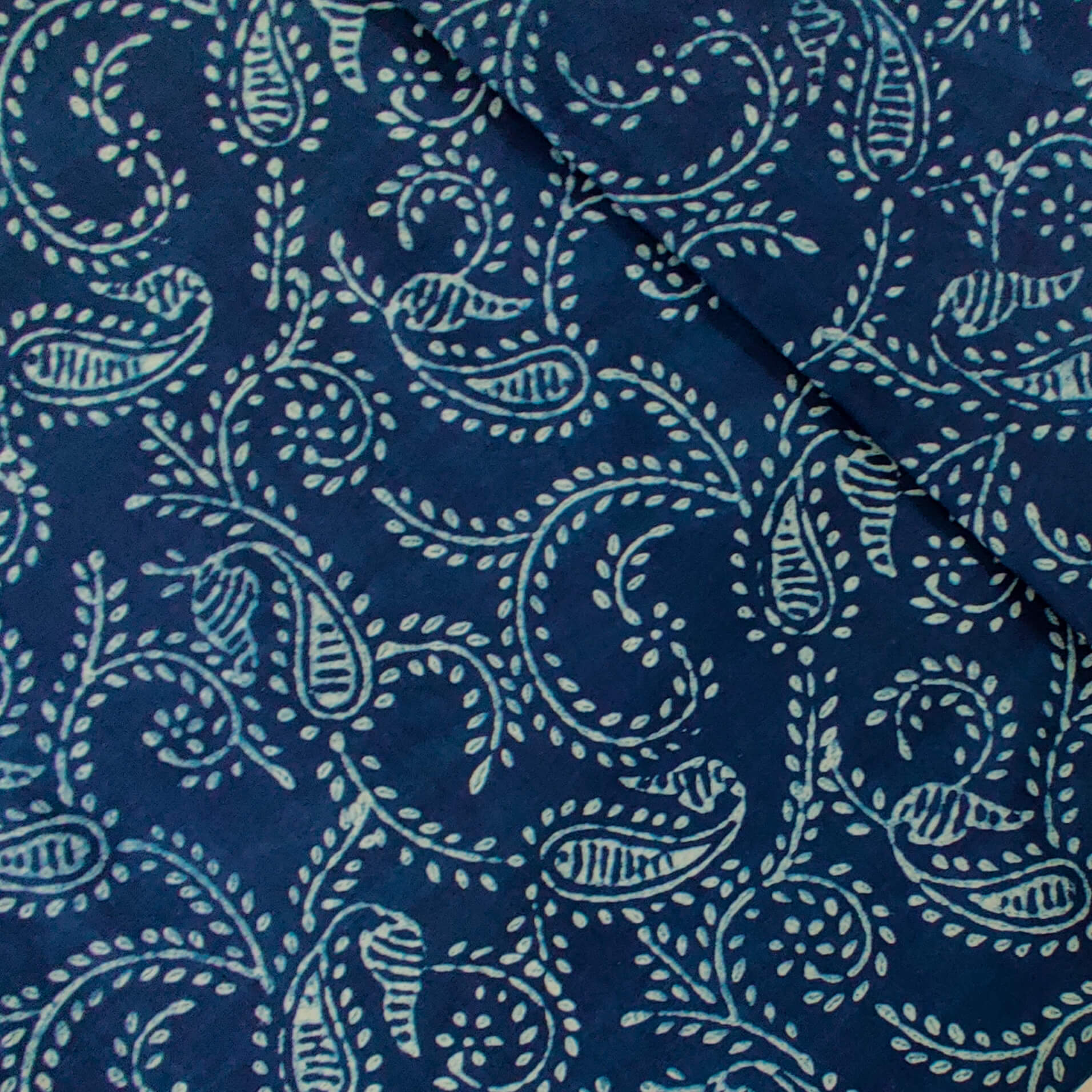 Pure Cotton Special Akola Indigo With Tiny Kairi Jaal Hand Block Print Fabric