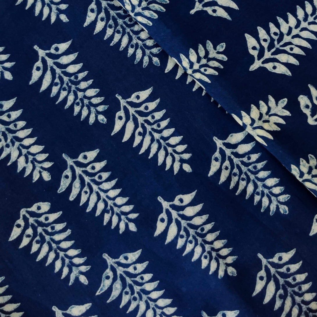 Pure Cotton Special Ankola Indigo With Fern Hand Block Print Fabric