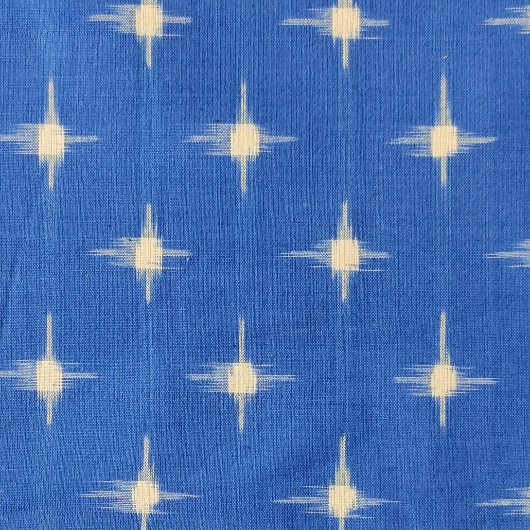 Pure Cotton Special Double Ikkat Blue With Cream Twinkling Star Weaves Woven Fabric